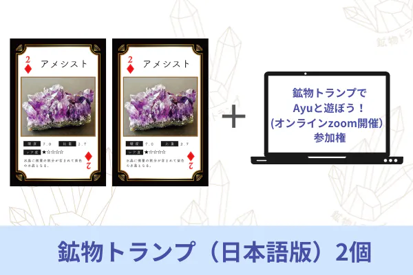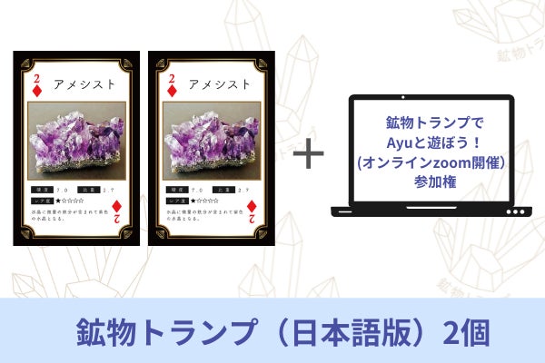 リターン③:新装版「鉱物トランプ」日本語版2つと、「鉱物トランプでAyuと遊ぼう!」オンラインzoom開催参加権です。