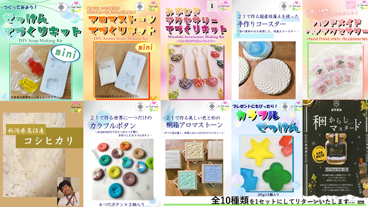 ・内容:グリセリン20g✕1色、型1つ(写真は通常キットのイメージです。リターン品は、miniキットになります。)、作成動画QRコード
