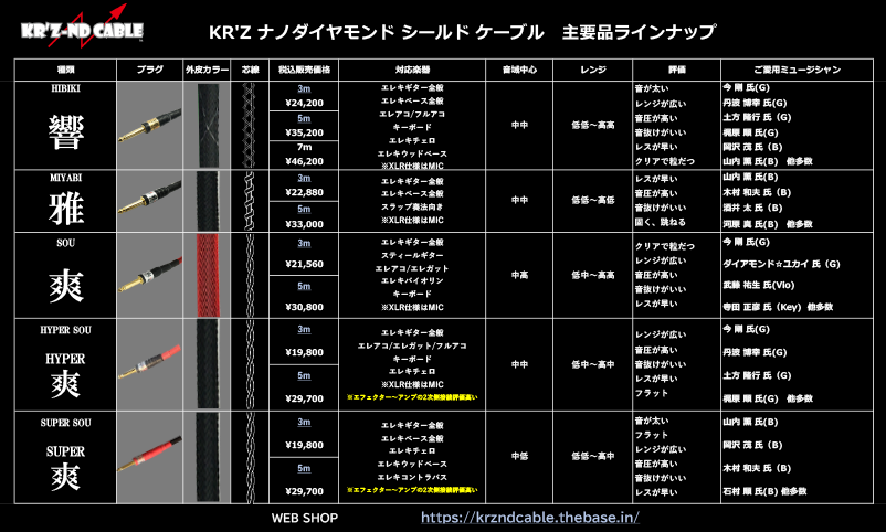 ●KR’Z-ND CABLE (ハンドメイド版)主要品ラインナップ