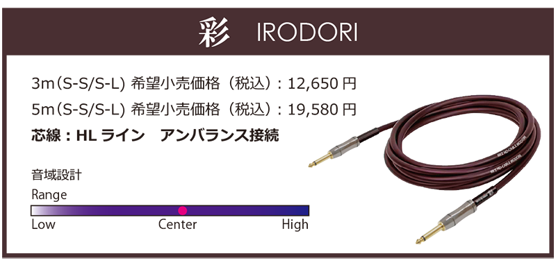 8.量産1号品 KR'Z-ND CABLE【彩】IRODORI 5m、プラグS-S/S-Lご支援金15,400円 (21%OFF)