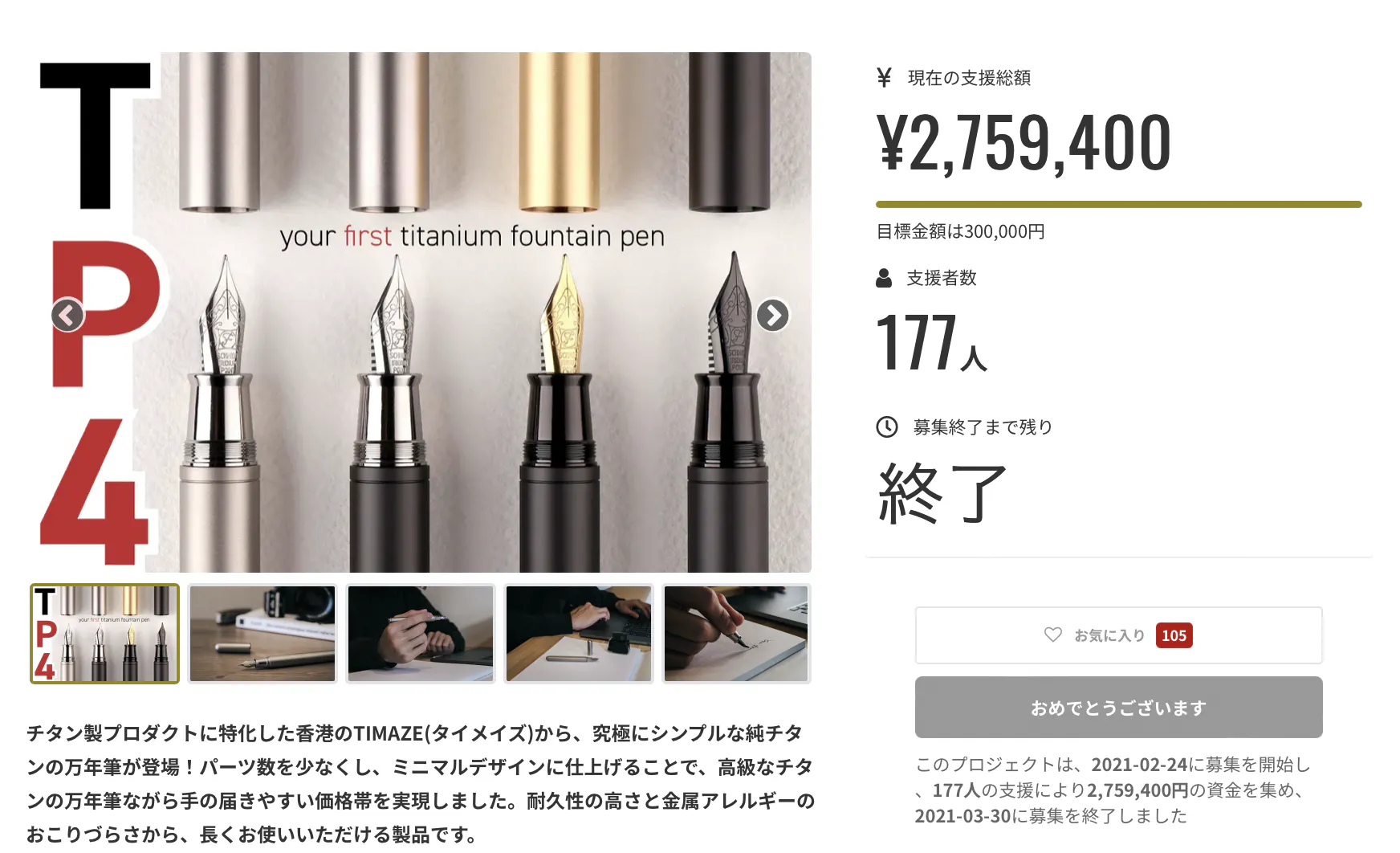 新プロジェクトご紹介:チタン製ミニ万年筆 TP4-mini