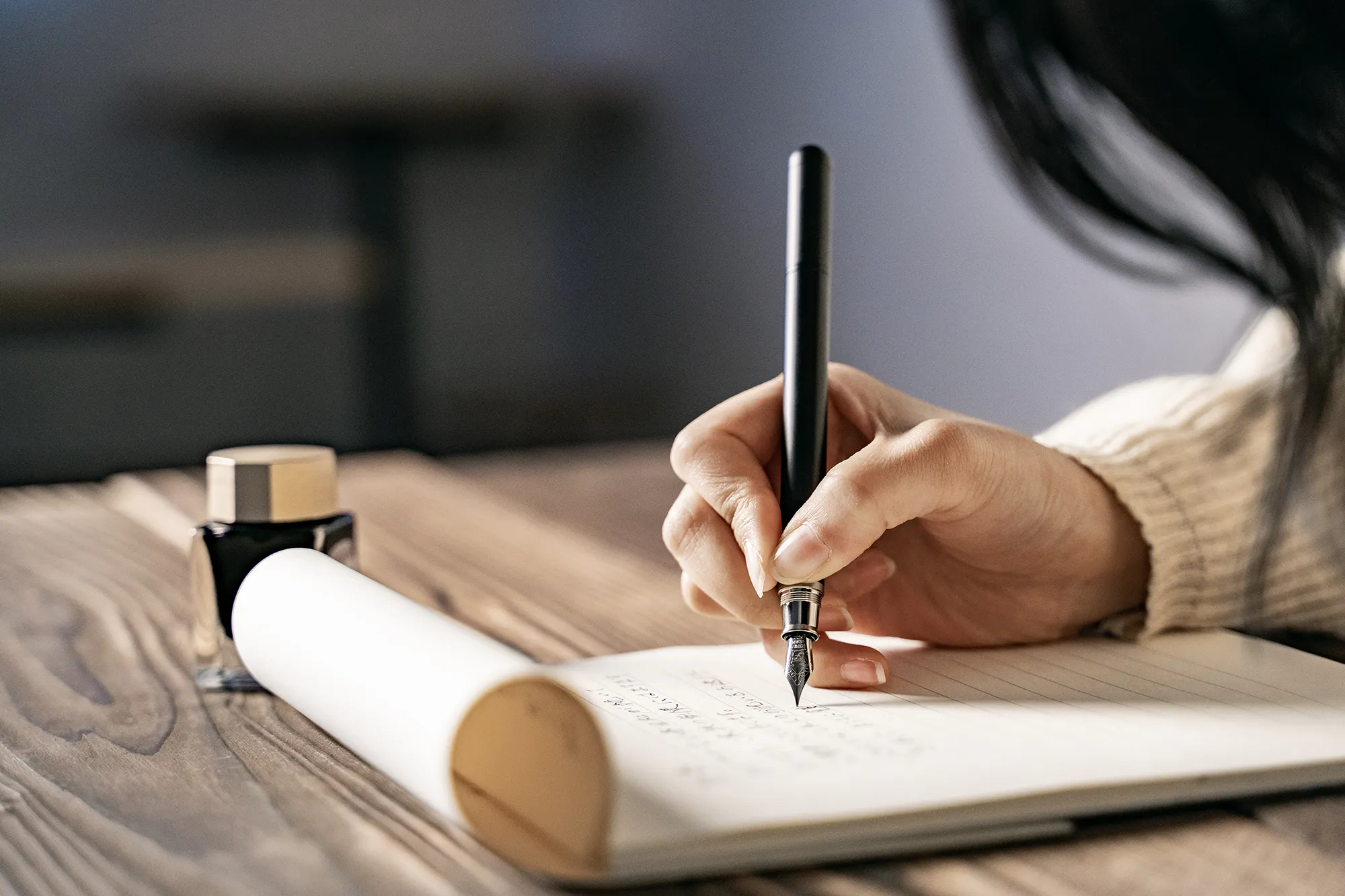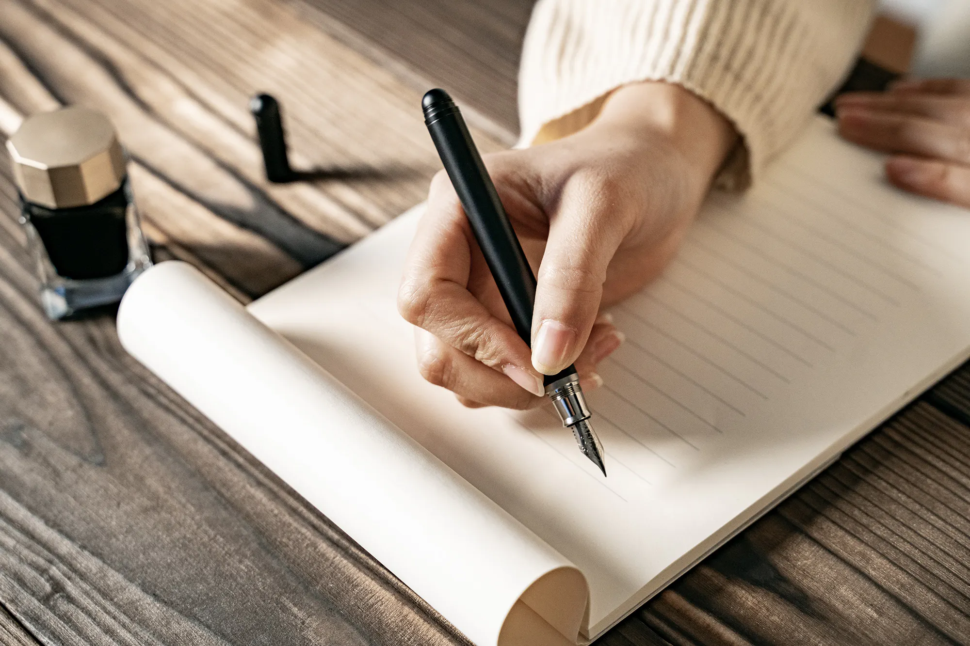軽い書き心地の万年筆ではほとんど筆圧をかけずに書くことができるため、長時間の筆記でも手が疲れにくいという利点も。
