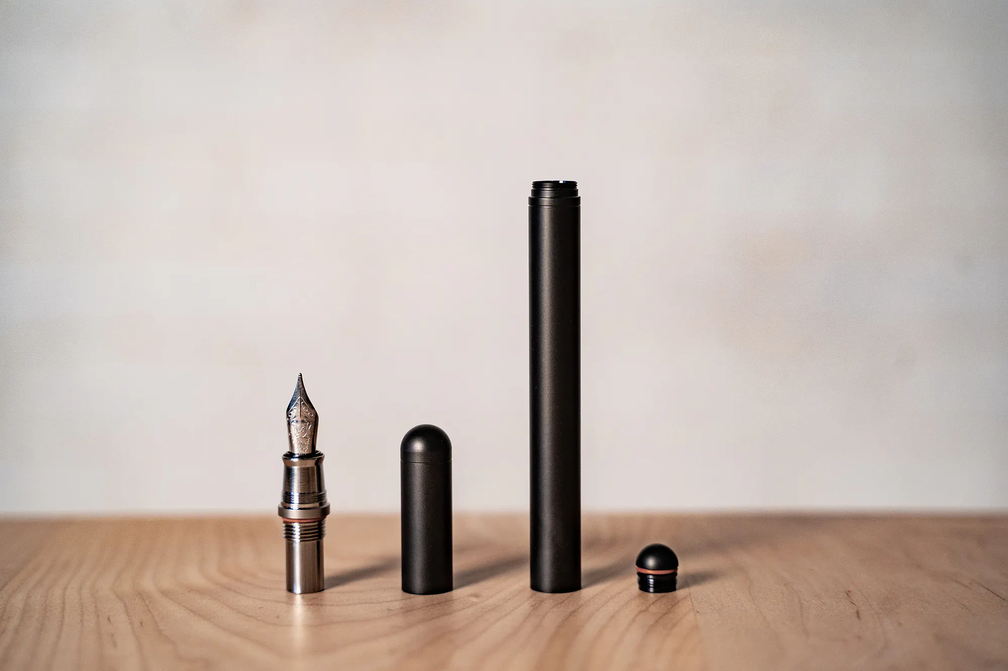 今回、TP4-V2では、コンバーターやペン先パーツを除いて、純チタンよりも硬度が高いグレード5のチタン合金を採用。