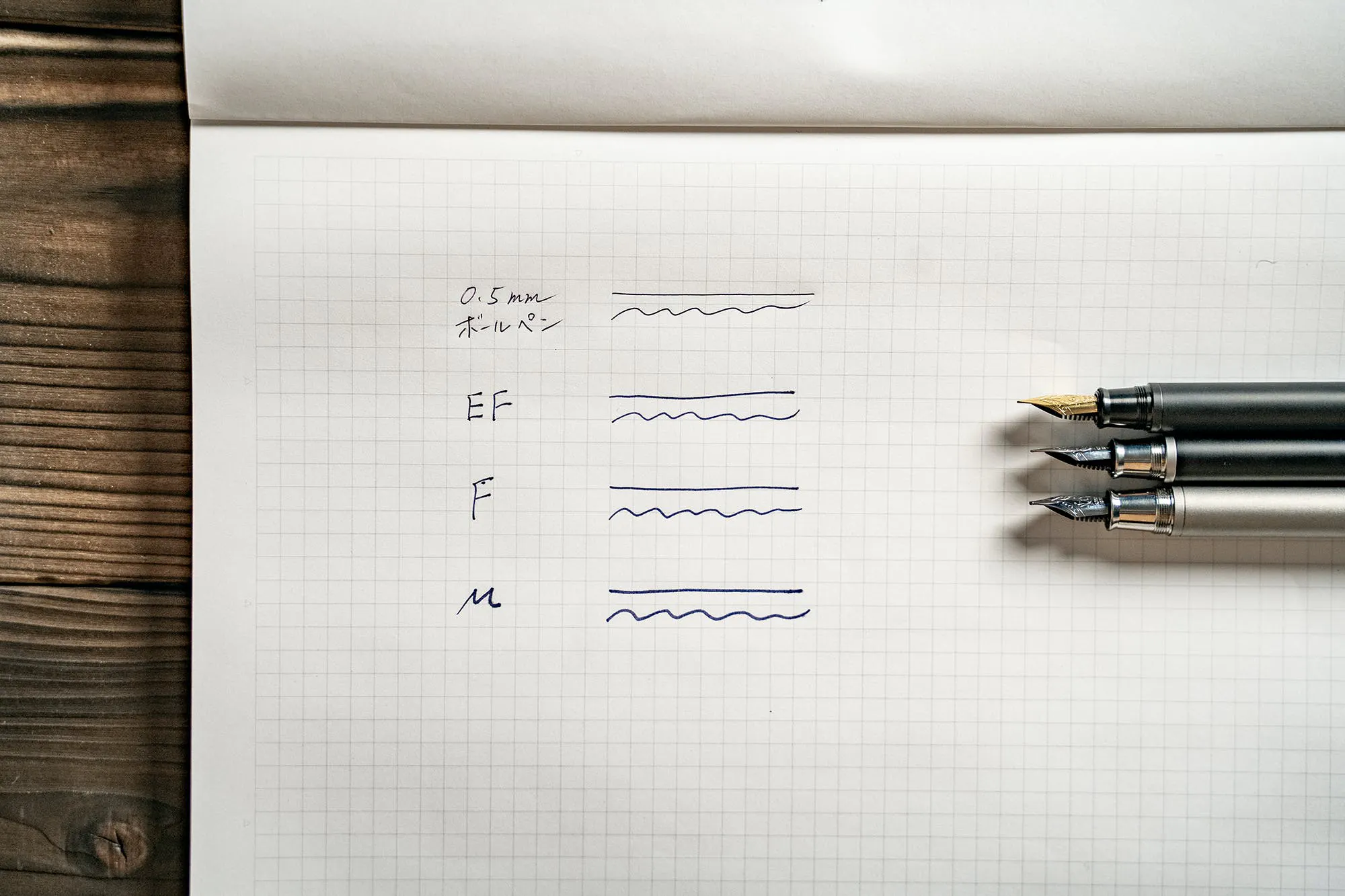 今回も、EF(エクストラファイン)の極細・F(ファイン)の細字・M(ミディアム)の中字の3種類をご用意しました。