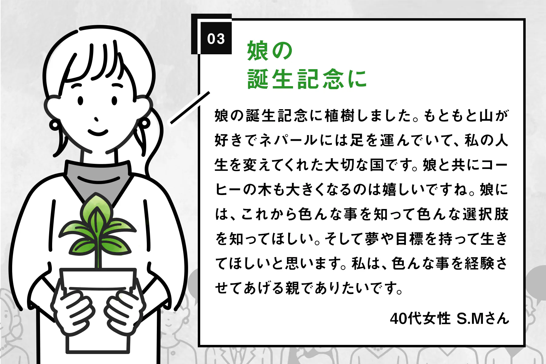 さらに、木を植えるというアクションそのものが、地球温暖化やコーヒーの生産に関わる環境破壊に対する課題解決や豊かさの再生に貢献しています。