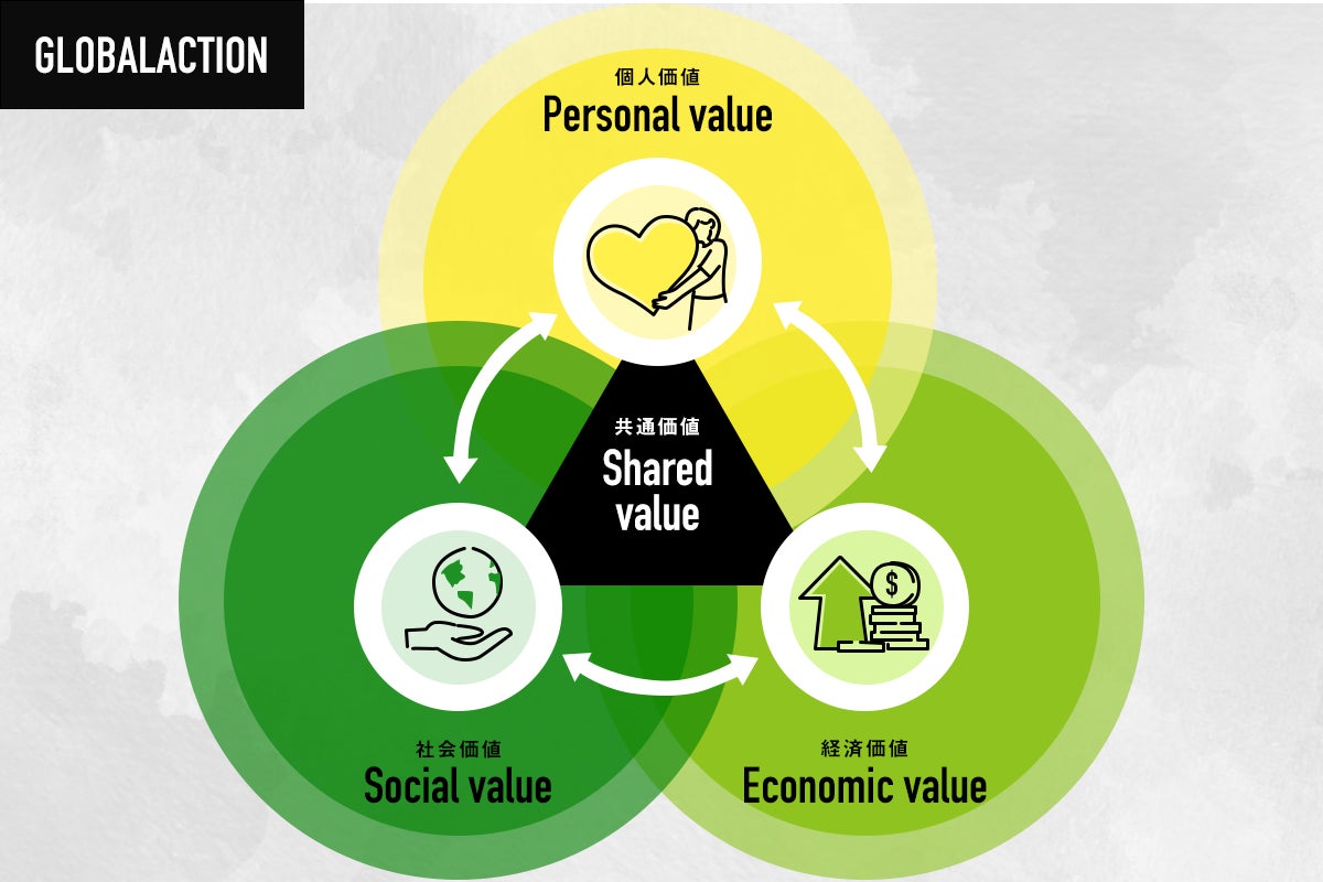 個人価値をカタチにすることを通じて、経済・社会の価値も生み出し、社会を押し上げていくアクション