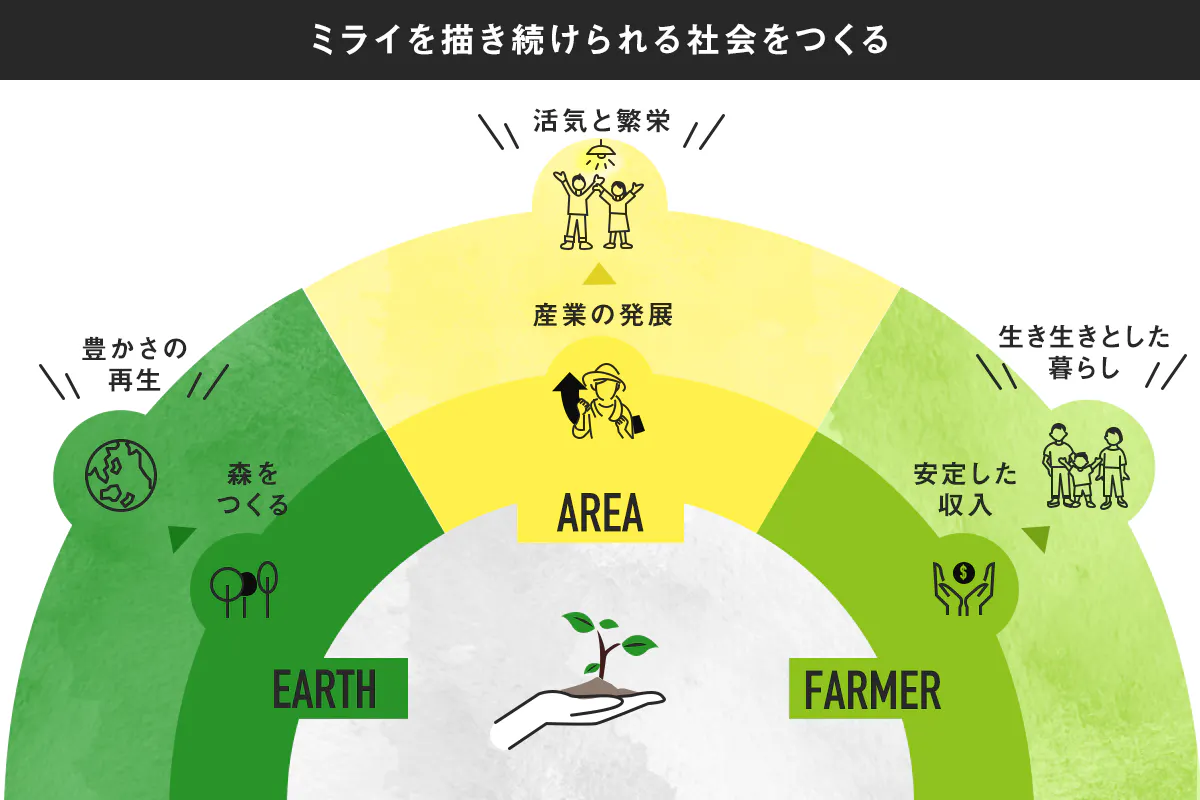 本プロジェクトには、今後の持続的なコーヒー栽培や消費を促すためのエッセンスが存分に含まれていると私たちは考えています。「植樹を通して森をつくり、雇用を生み出す」この栽培モデルが世界へ拡がることで、「ミライを描き続けられる社会をつくる」ことができると信じています。
