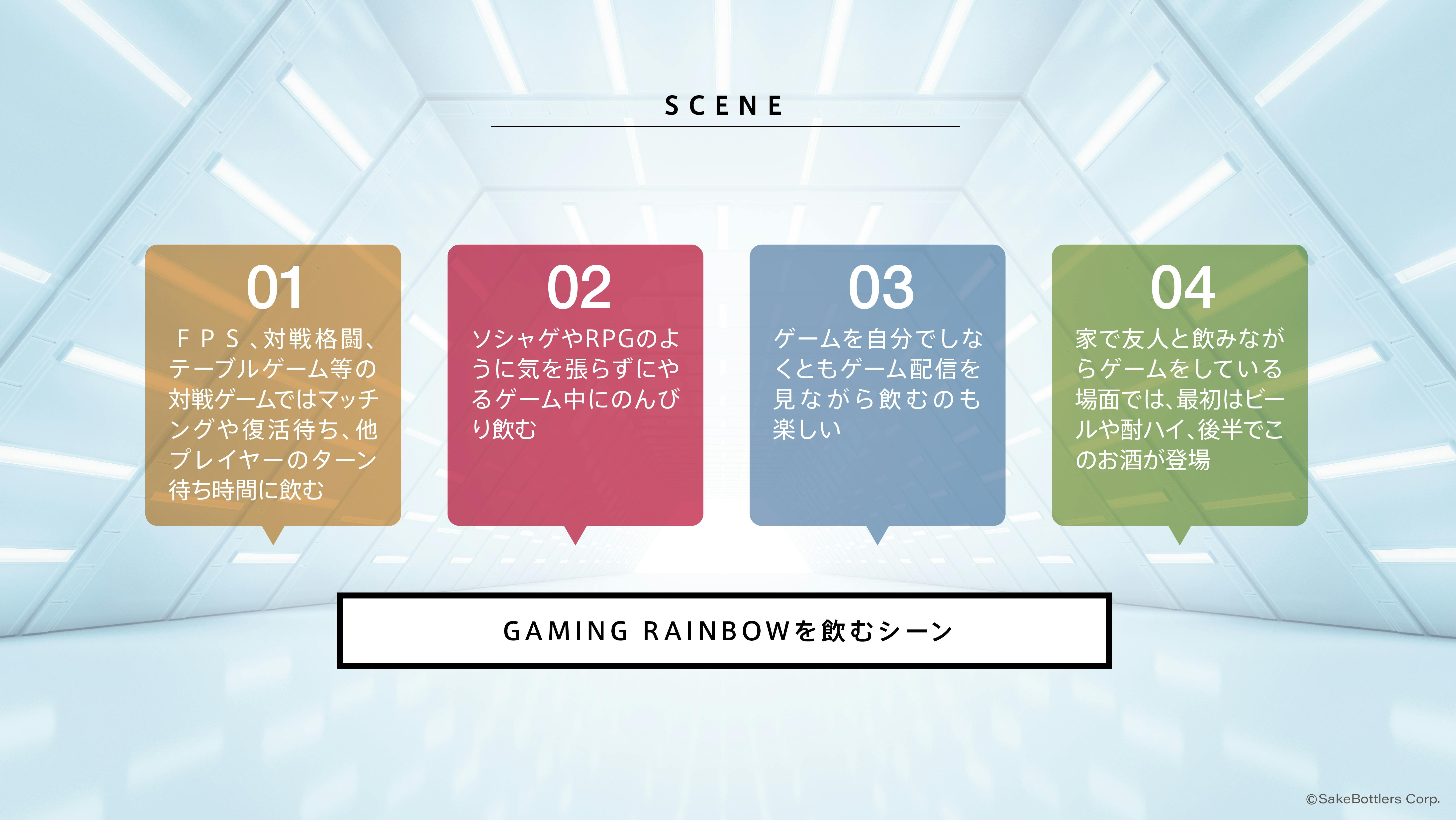 ですが、そうではなく、お酒を飲んでゲームをすることが楽しい選択肢のひとつであることを体感してもらいたい。そのため、考えうる最高のチームでゲーミング日本酒「GAMING RAINBOW」を作り上げました。