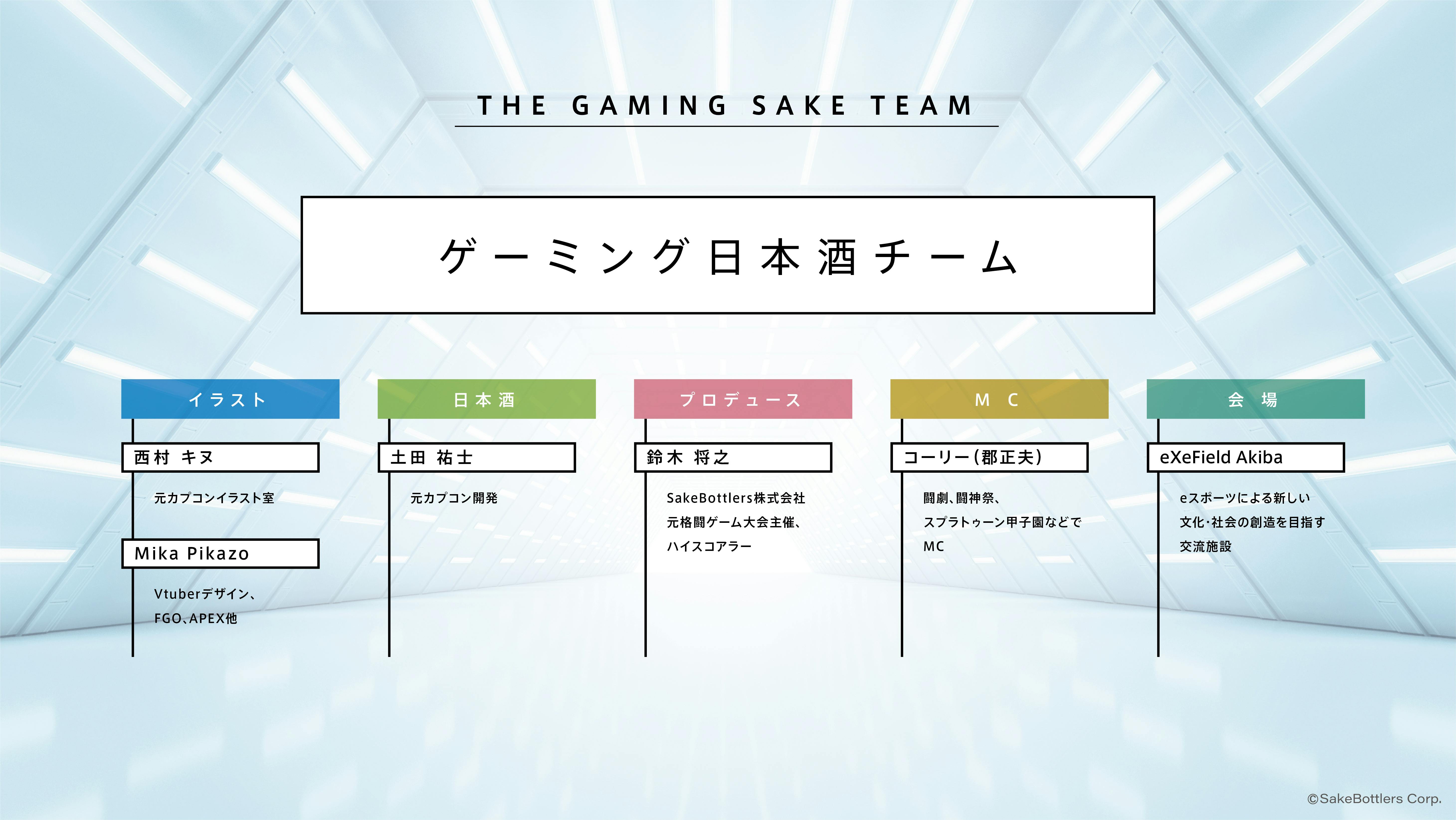 現在はオンラインが主流、かつ、コロナ禍によりゲームセンターや家に集まってゲームをするということがやや困難な状況になっています。そんななか、オンラインでも同じお酒を飲んでいたり、ほろ酔いで配信をみたり、そしてまたみんなが集まって飲みながらゲームができることを期待して、ゲーム中に飲む日本酒を企画しました。