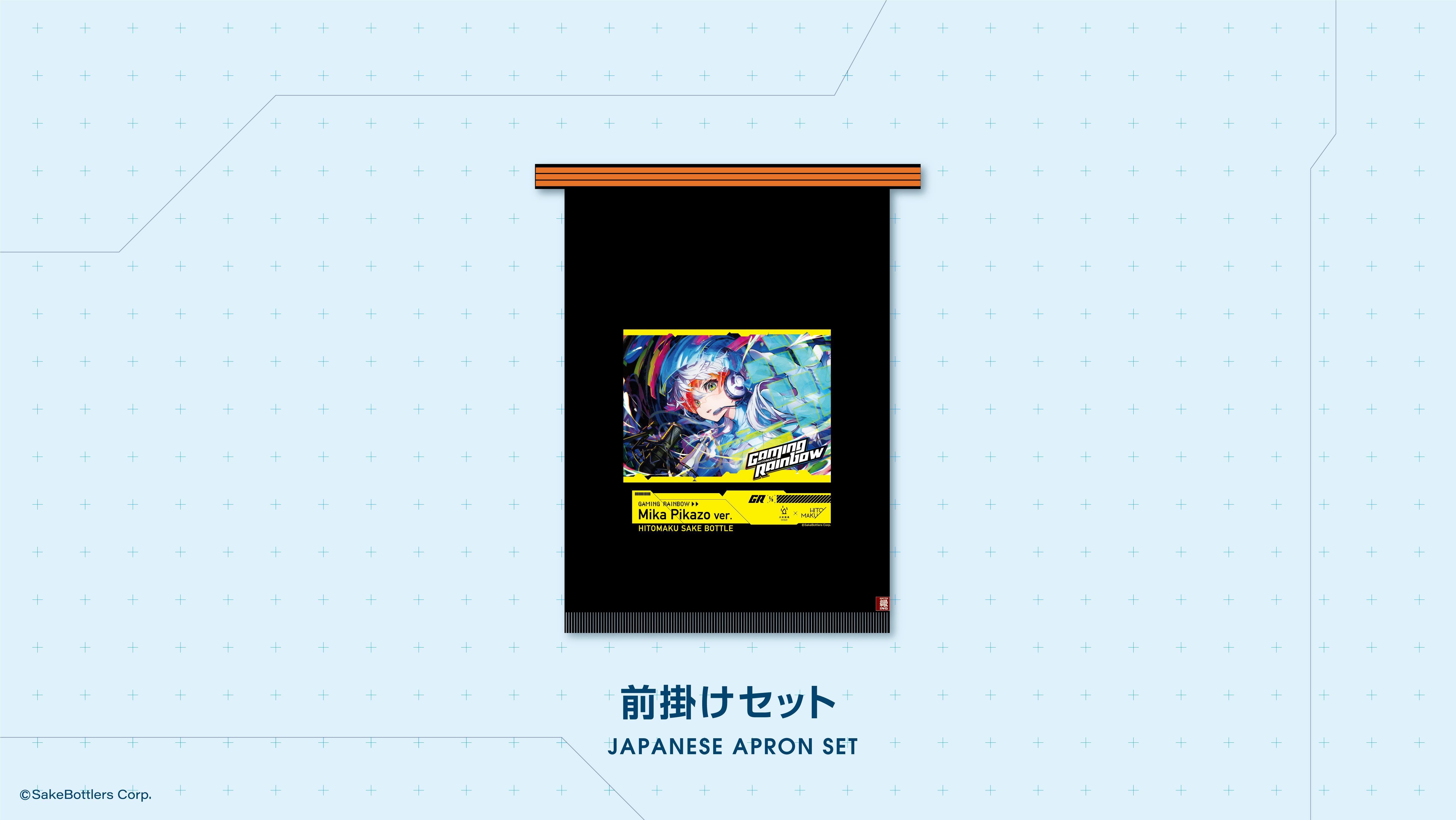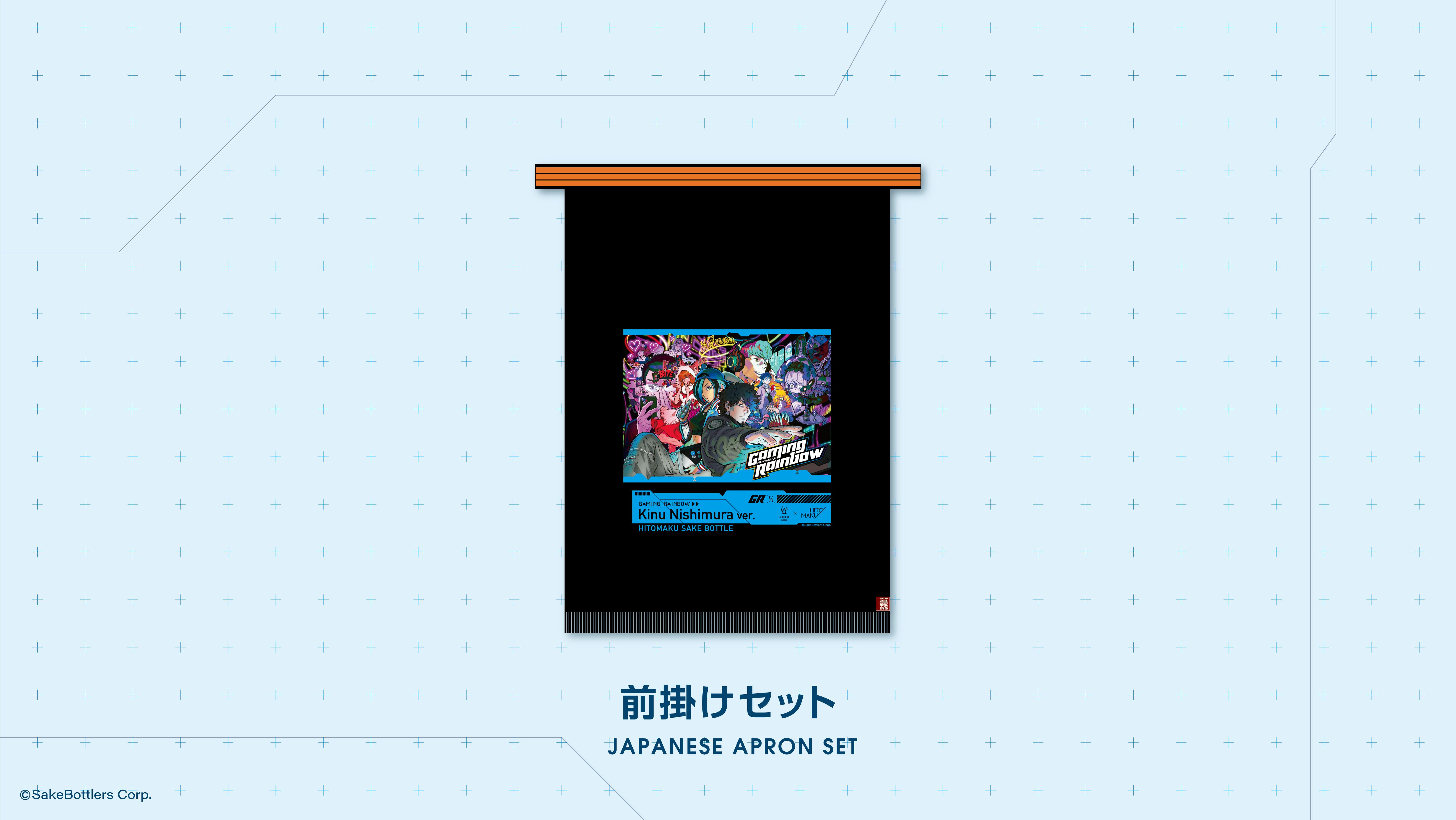 西村キヌ氏、Mika Pikazo氏、土田&HITOMAKUコラボ版の前掛けです。日本酒ならではのグッズかと思います。前掛けメーカーにこんなカッコイイデザインの前掛けは見たことがない、とのコメントをいただきました。