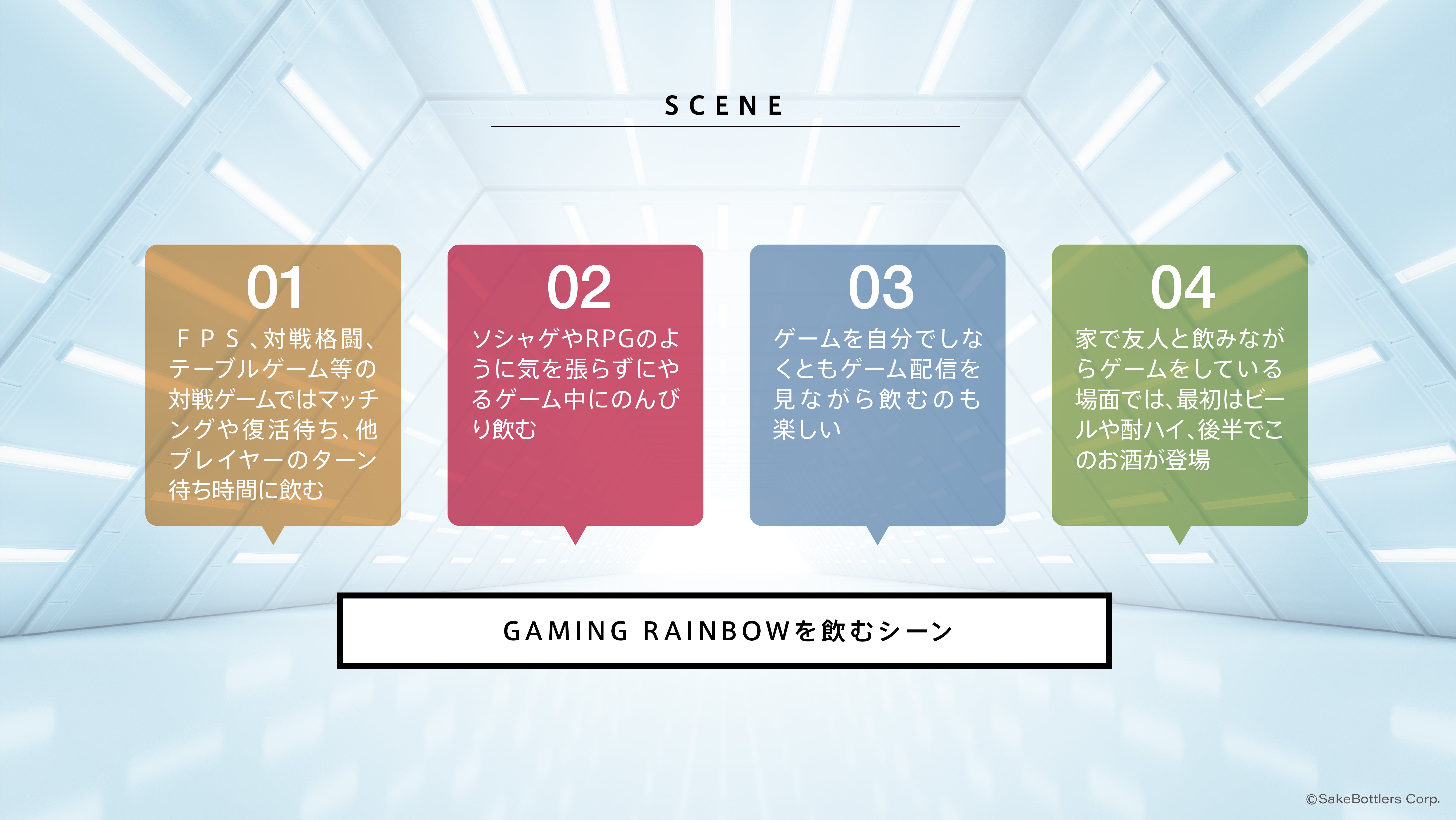 ゲーム全般(ビデオ、ボード、カード等ゲーム全て)をしながら飲む日本酒であり、「ゲームをしながら日本酒を飲む」というカルチャーを作る(あるいは改めて思い出す)ためのお酒です。