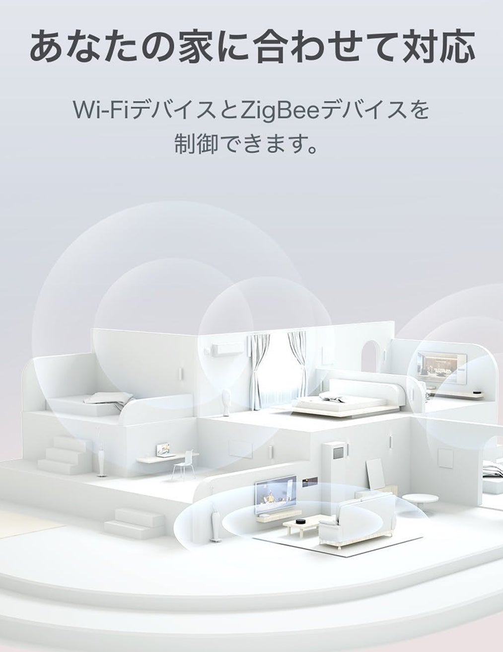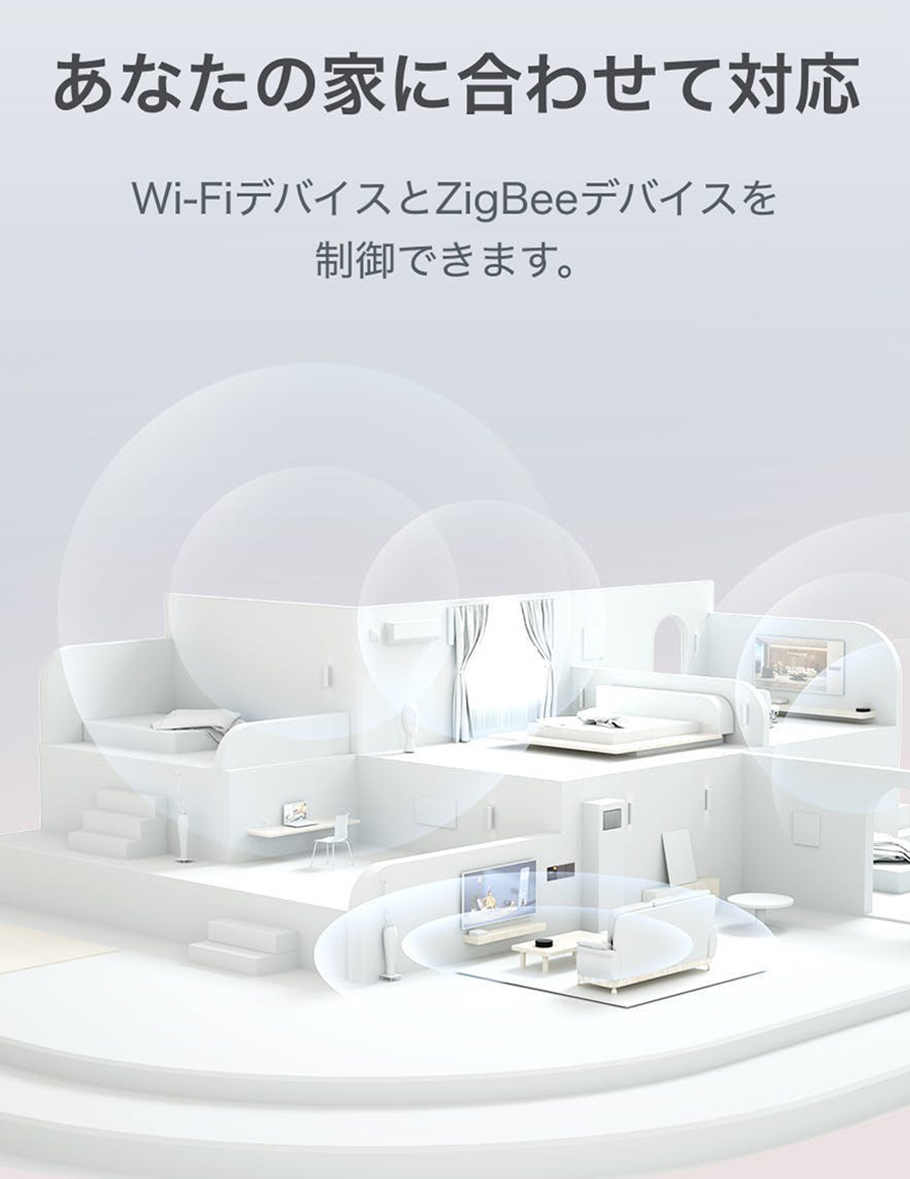 ※ハブM2ゲートウェイ本体では、最大32台のスマートホームデバイスを接続することができます。スマートプラグや壁スイッチなどのリピータ機器を使用する場合は、最大128台の接続が可能です。