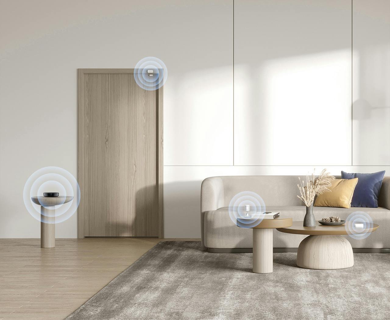 帰宅してドアを開けると、ドア・窓センサーが動きを検知し、スマートスイッチに信号を送り、自動的に照明器具を点灯させます。