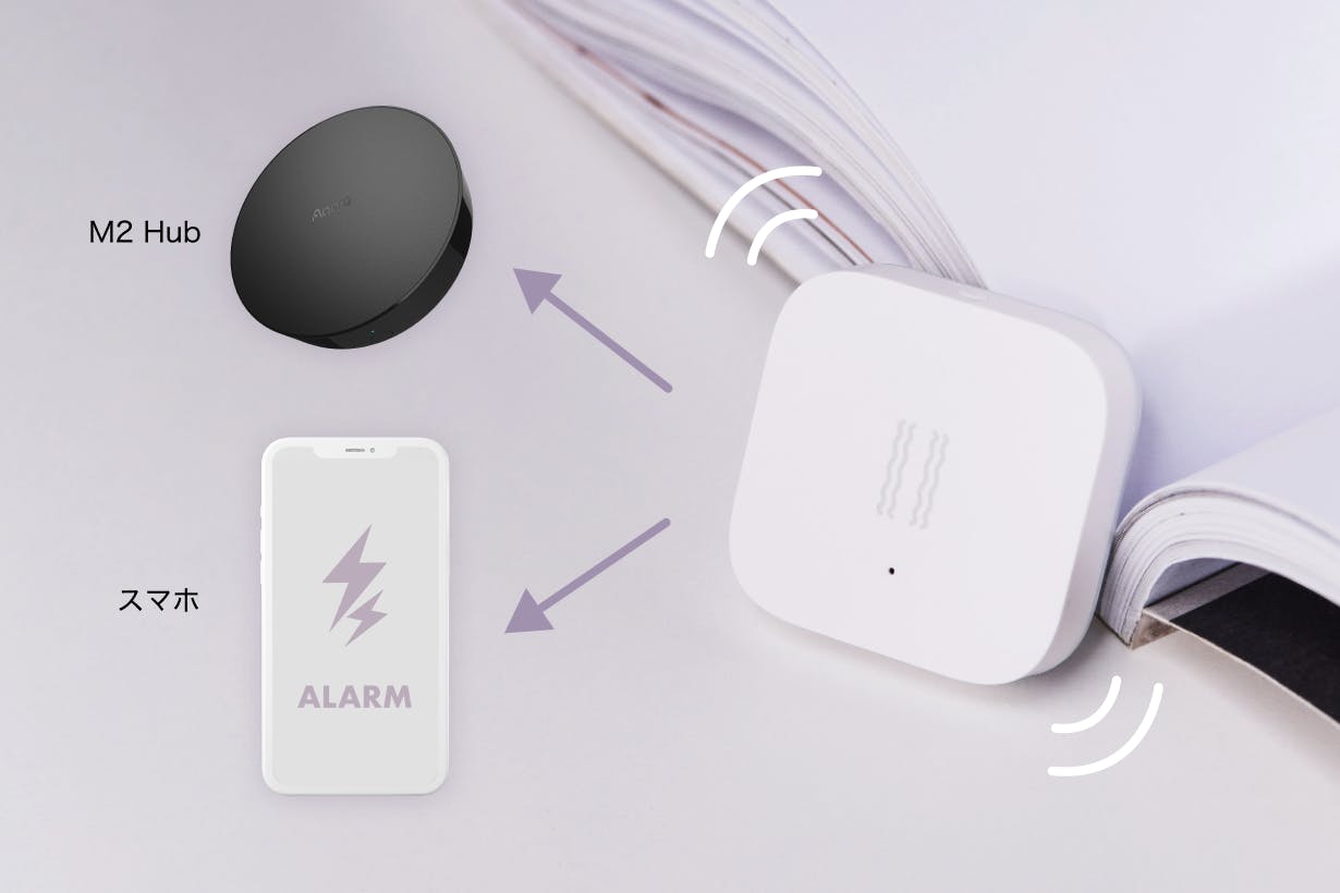 物体の振動、傾き、落下を検知すると、バイブレーションセンサーがAqara ハブM2を作動させ、アラートを鳴らします。それと同時に、スマホにアラート通知が届きます。