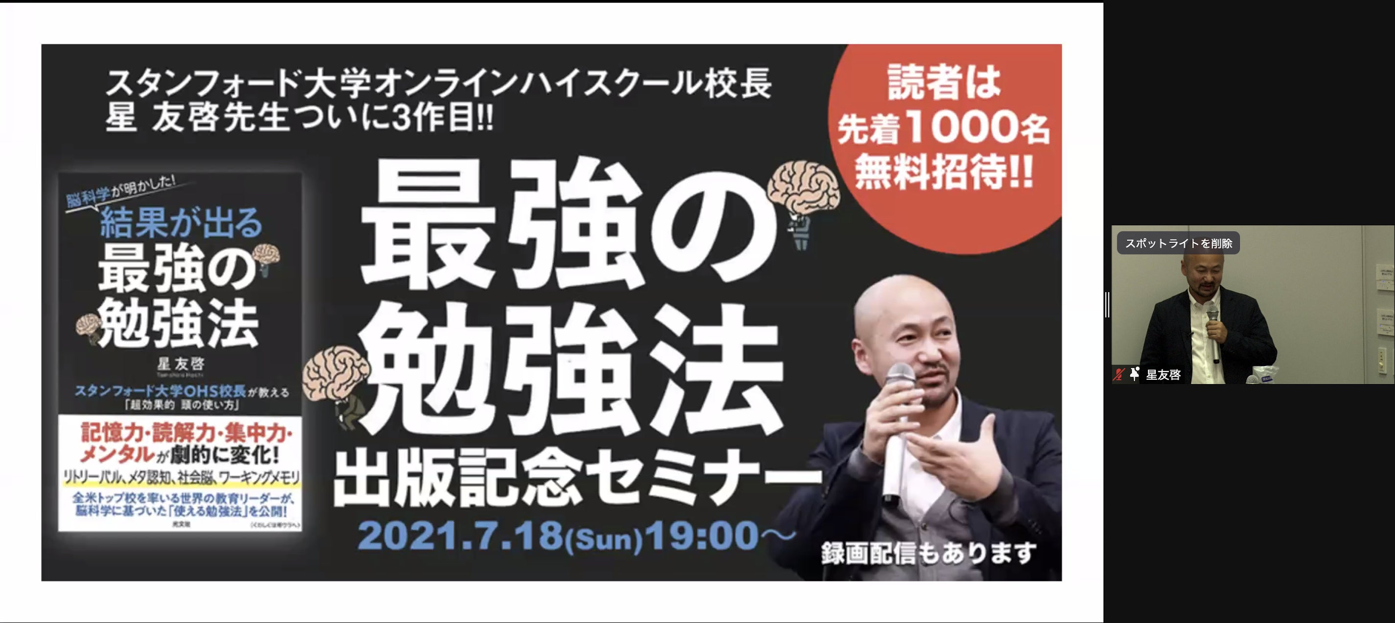 ▷2021年7月「『脳科学が明かした!結果が出る最強の勉強法』出版記念講演会」