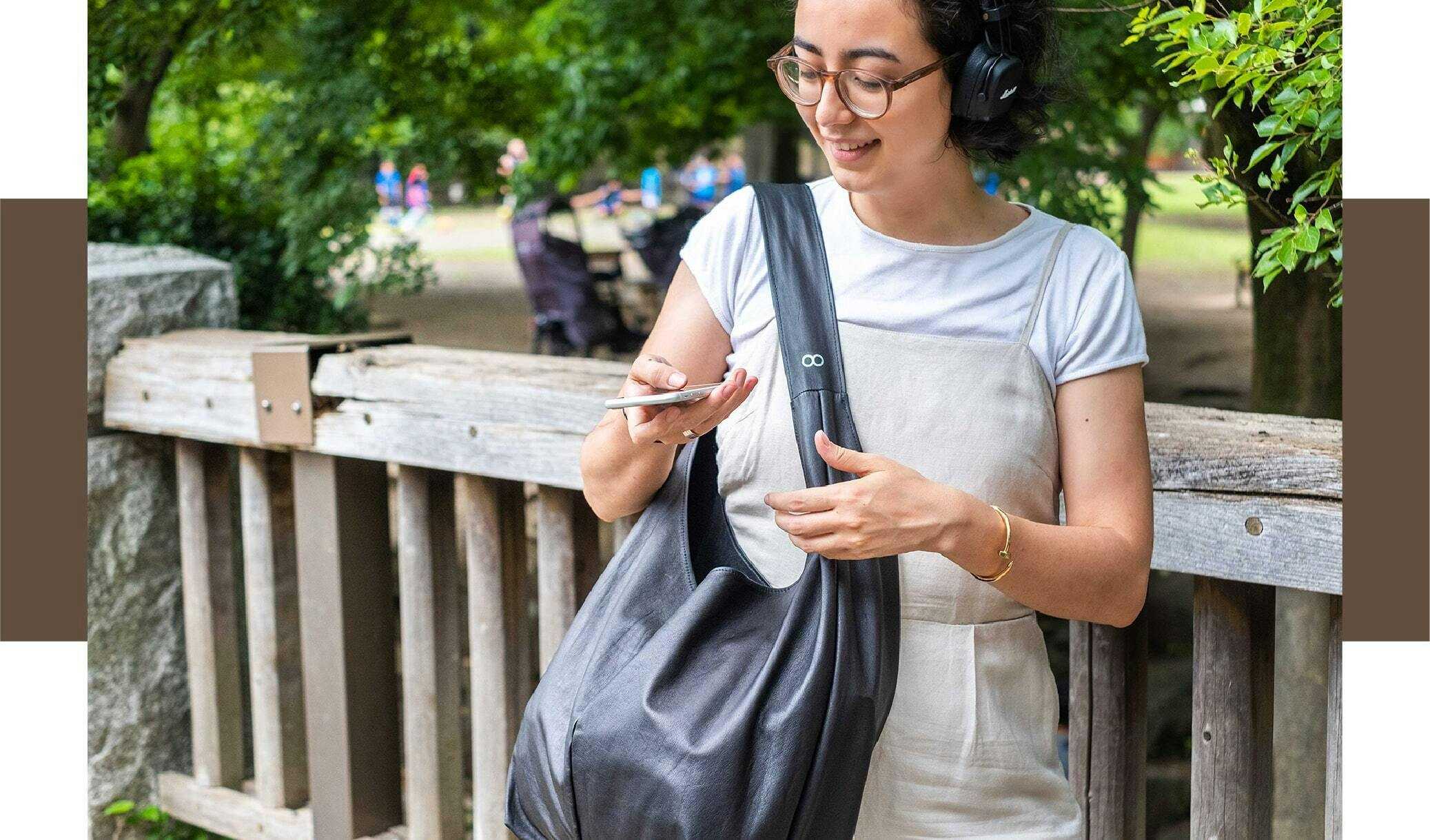 肩掛けで両手が空く