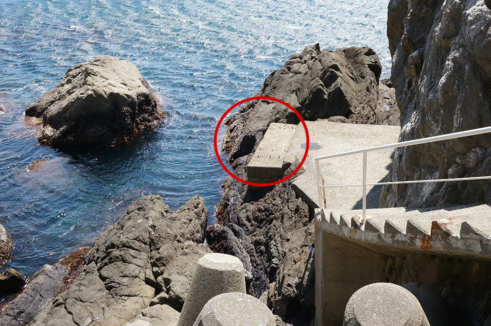 その採石場の坑道を使って、第二次大戦中は人間魚雷「回天」の出撃基地に利用される計画が進められましたが完成には至らず回天が配備されることも出撃することもなく終戦を迎えました。現在、海に潜ると当時の遺構とみられる巨大な鉄枠やコンクリートの支柱跡には、冬には海藻が生い茂り、夏にはカラフルなソフトコーラルが群生し、歴史の経過を肌で感じることができます。