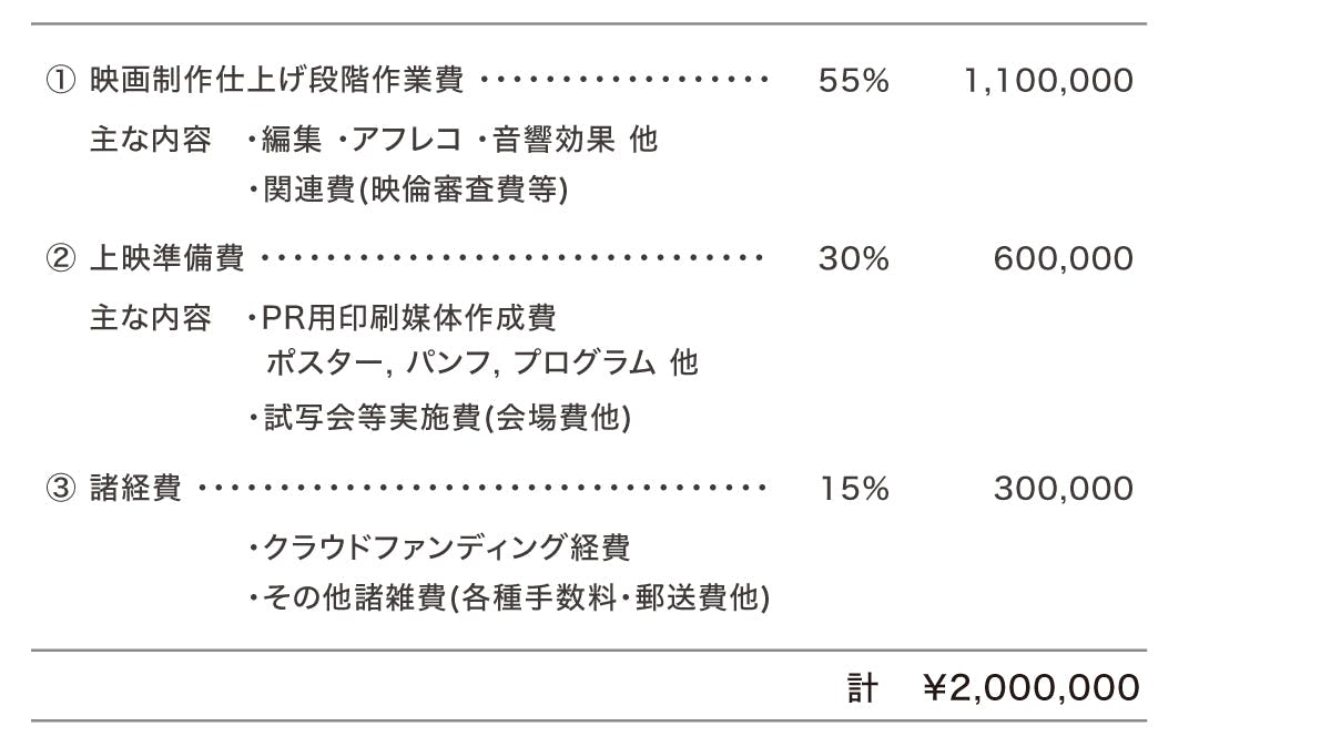 クラウドファンディングでの調達金につきましては、以下の内容で使わさせていただきます。