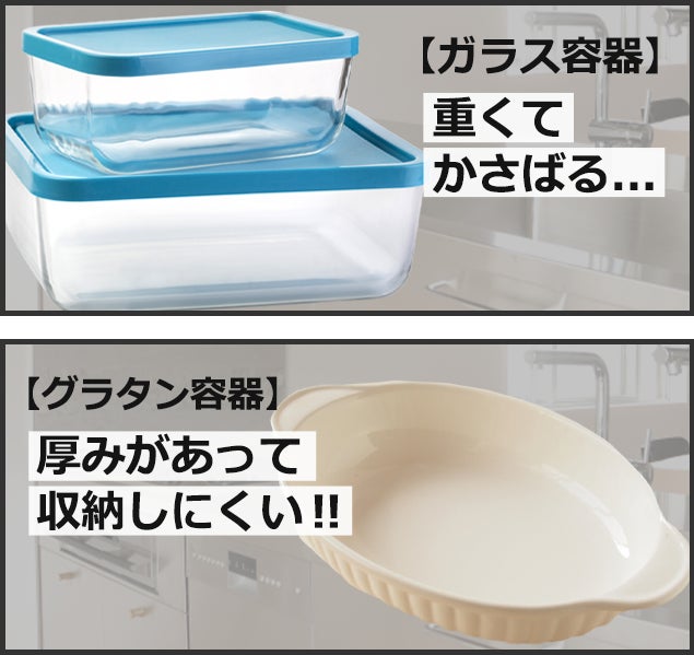 たまにしか使わないグラタン容器って厚みがあって形も様々で収納が大変!