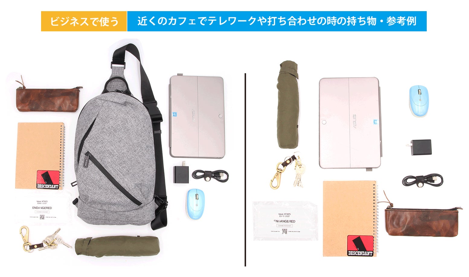 近くのカフェでテレワークや打ち合わせを想定した内容物になります。