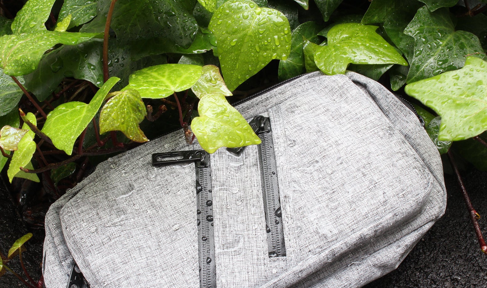 正面ポケットは止水ファスナーを採用。