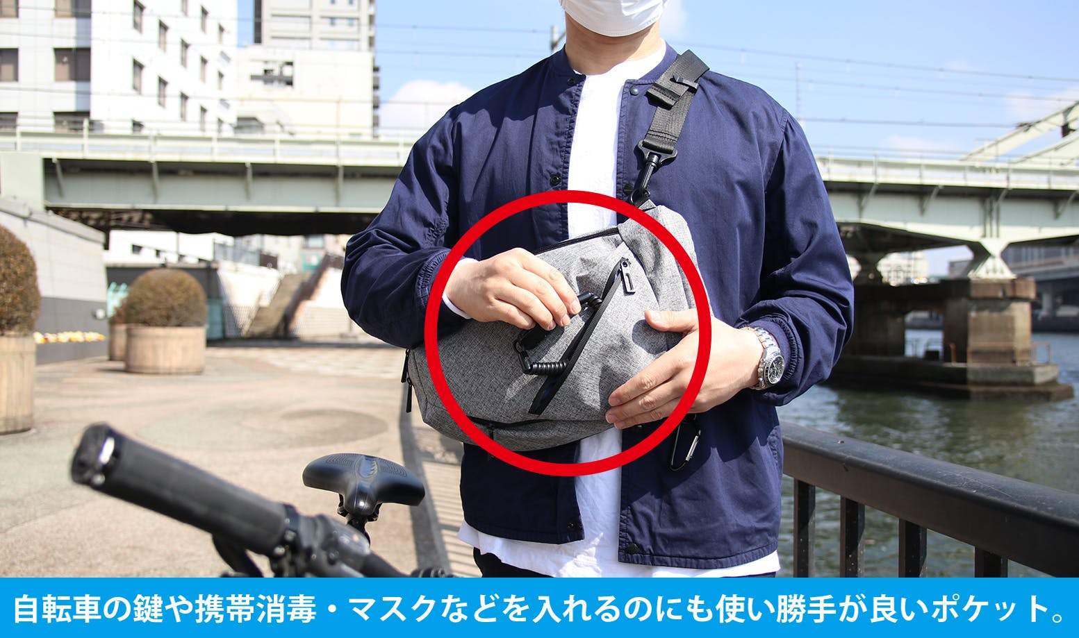 正面側にバッグを回してもしっかりと身体にフィットするので、