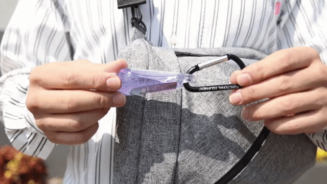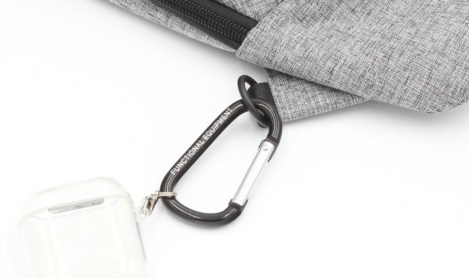 着脱可能なオリジナルのカラビナが最初から付属しています。