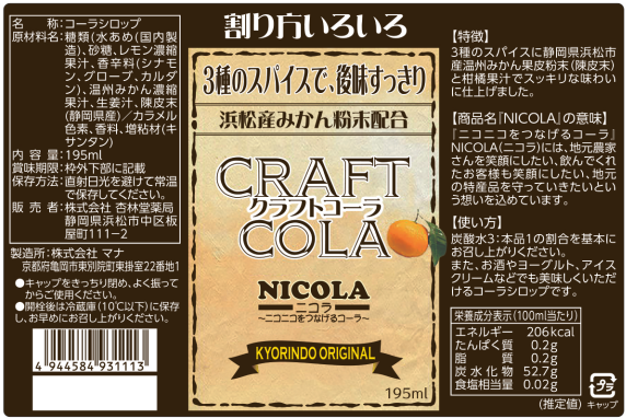 市販されているあらゆるクラフトコーラを取り寄せ、メンバーでテイスティングを重ねました。クラフトコーラ初心者の方にも飲んでいただけるように、すっきりとした味わいを目指しました。スパイスは、シナモン・クローブ・カルダモンの3種に絞り、みかんの香りが引き立つように工夫しました。