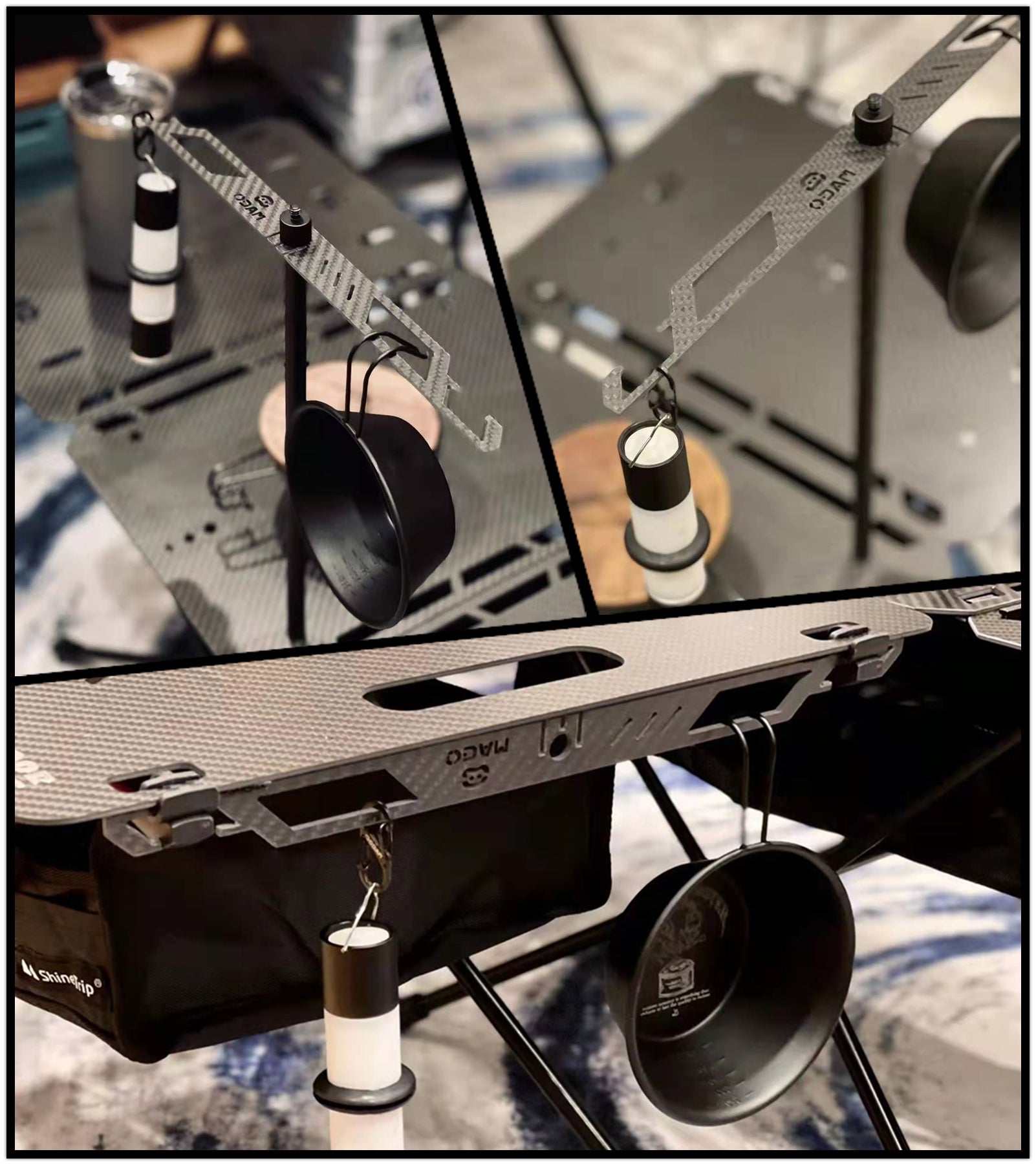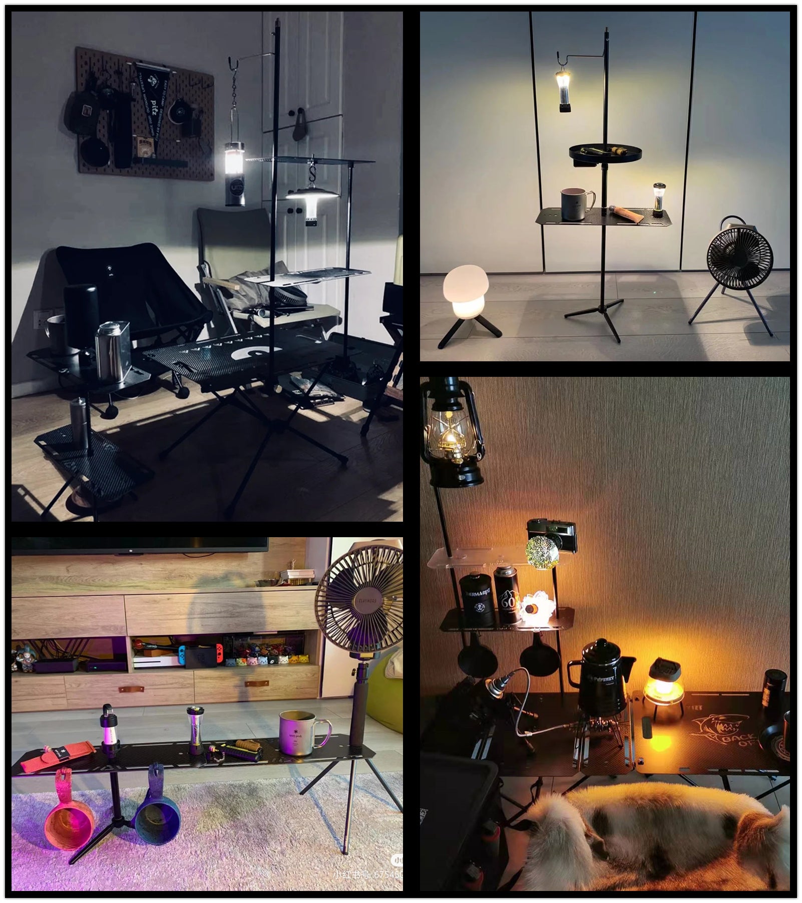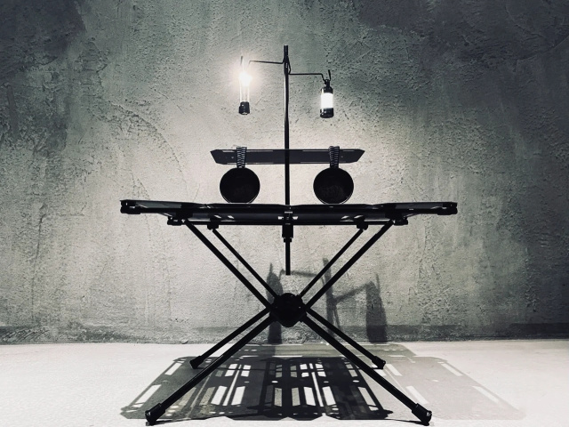 ランタンスタンドを利用することで、なんとカッコイイラック付きの多機能テーブルに変身可能!!