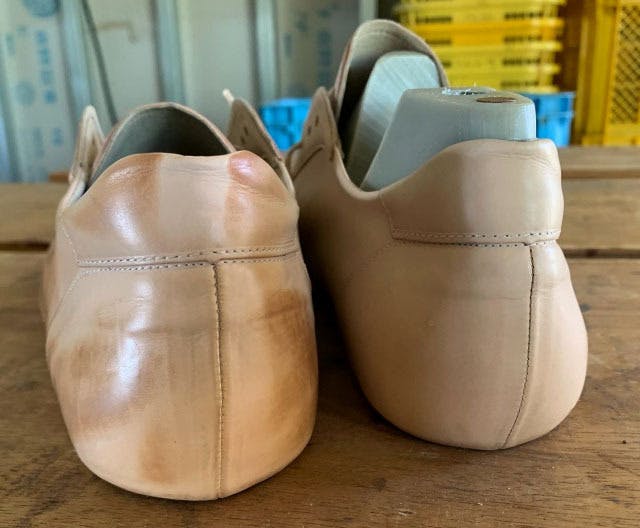 ※ブラックのみ色の特性上「焦がし加工」はございません。他の革靴と同じように磨いていくことで独自のツヤが出ます。