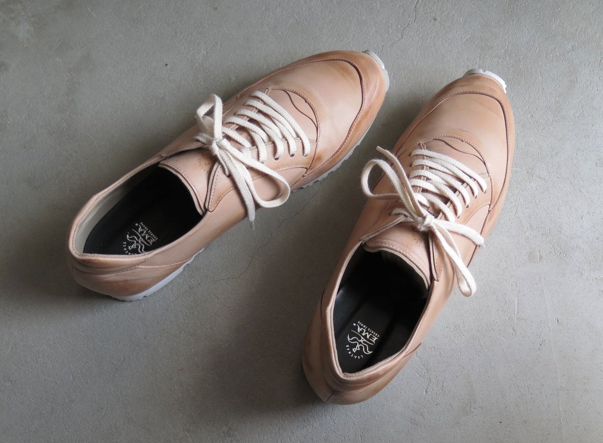 ヌメ革本来の風合いを生かしワックスにてバフ(焦がし加工)を施すことで、”大人のレザースニーカー”をデザインしました。