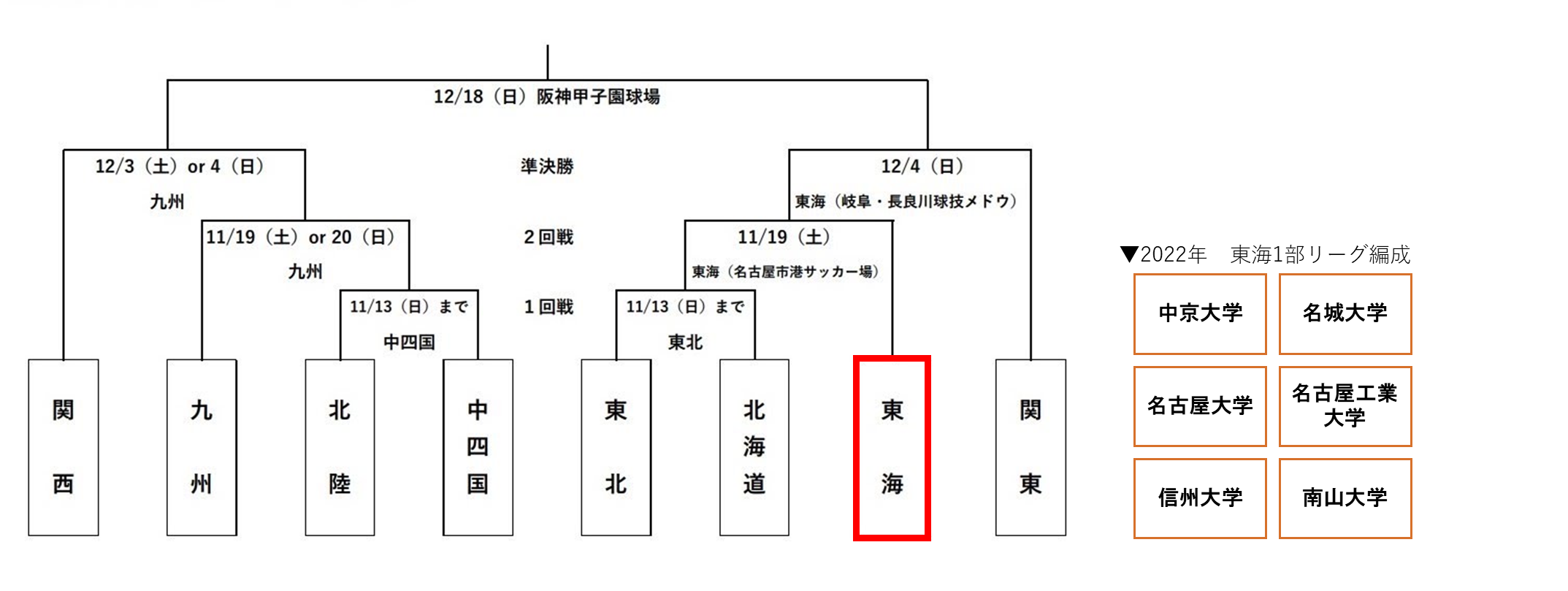 - 今年から東海地区代表は勝ち進むことで関東地区代表との試合を行うことが想定されます。そのため、関東の強豪校にもスカウトをしなければなりません。