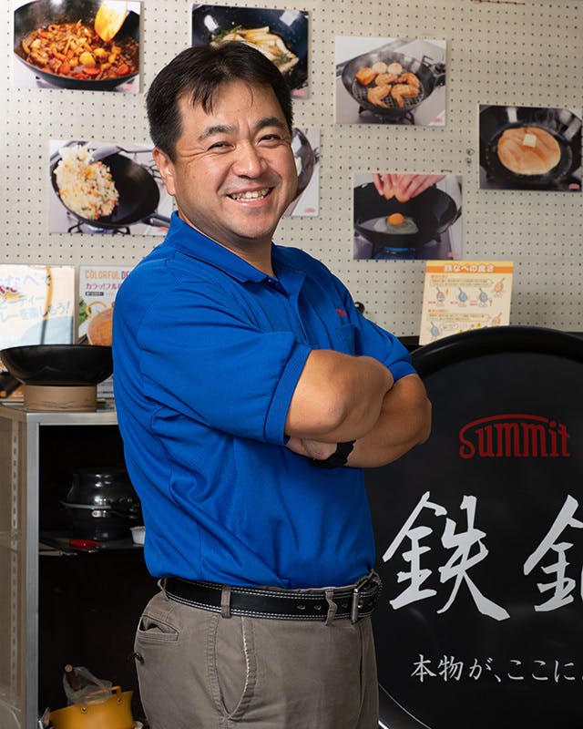 峯島社長との出会いがあったからこそ今回のプロジェクトは実現できました。私の理想とするフライパンを作って下さる企業様と出会えるまで1年ほどかかりました。峯島社長は職人を経て社長になられており現場を知っているからこそ様々なアドバイスを頂くことができました。