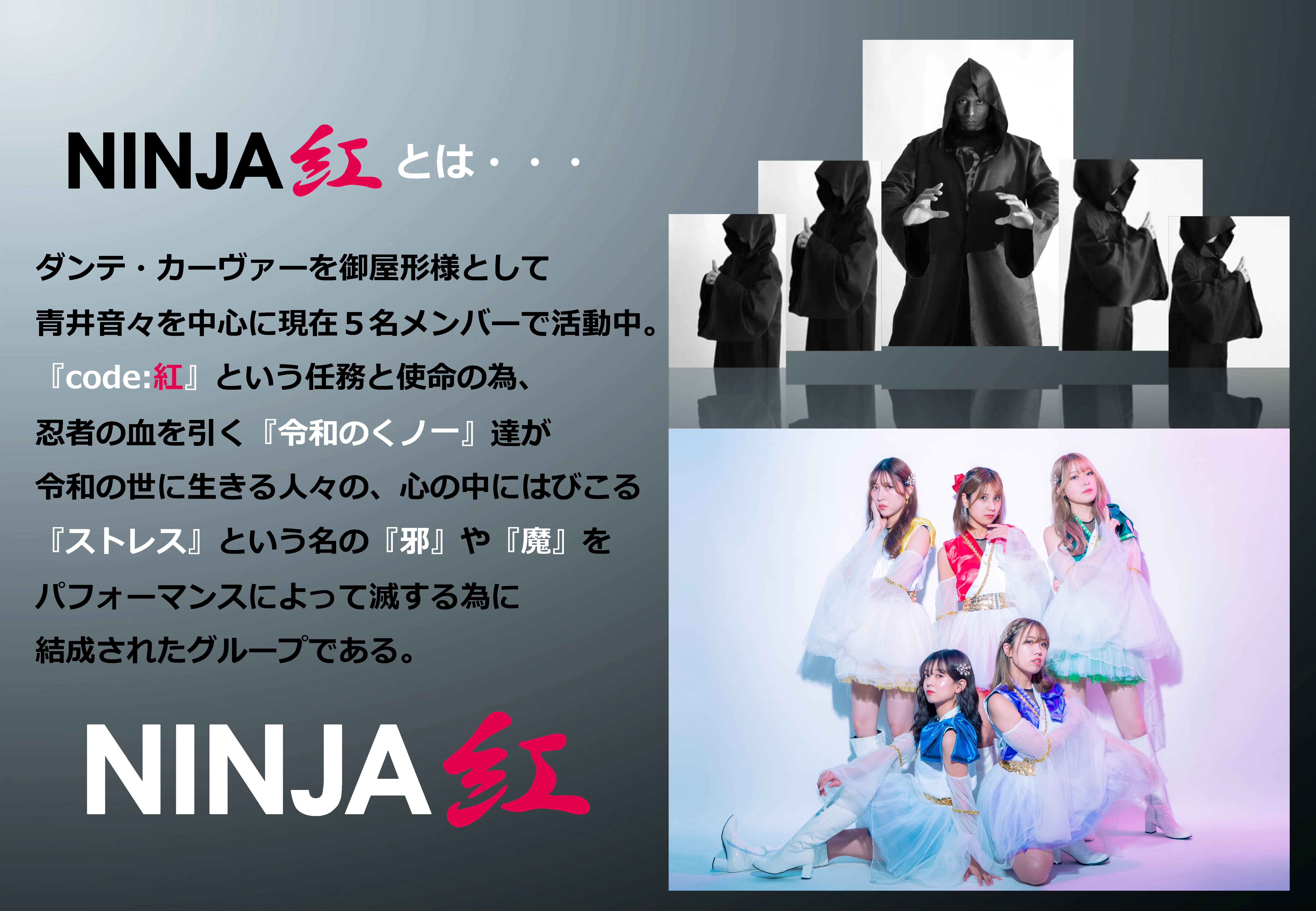NINJA紅は個性あるメンバーたちが夢・目標を持って、ライブ活動を中心に精力的に活動しております。