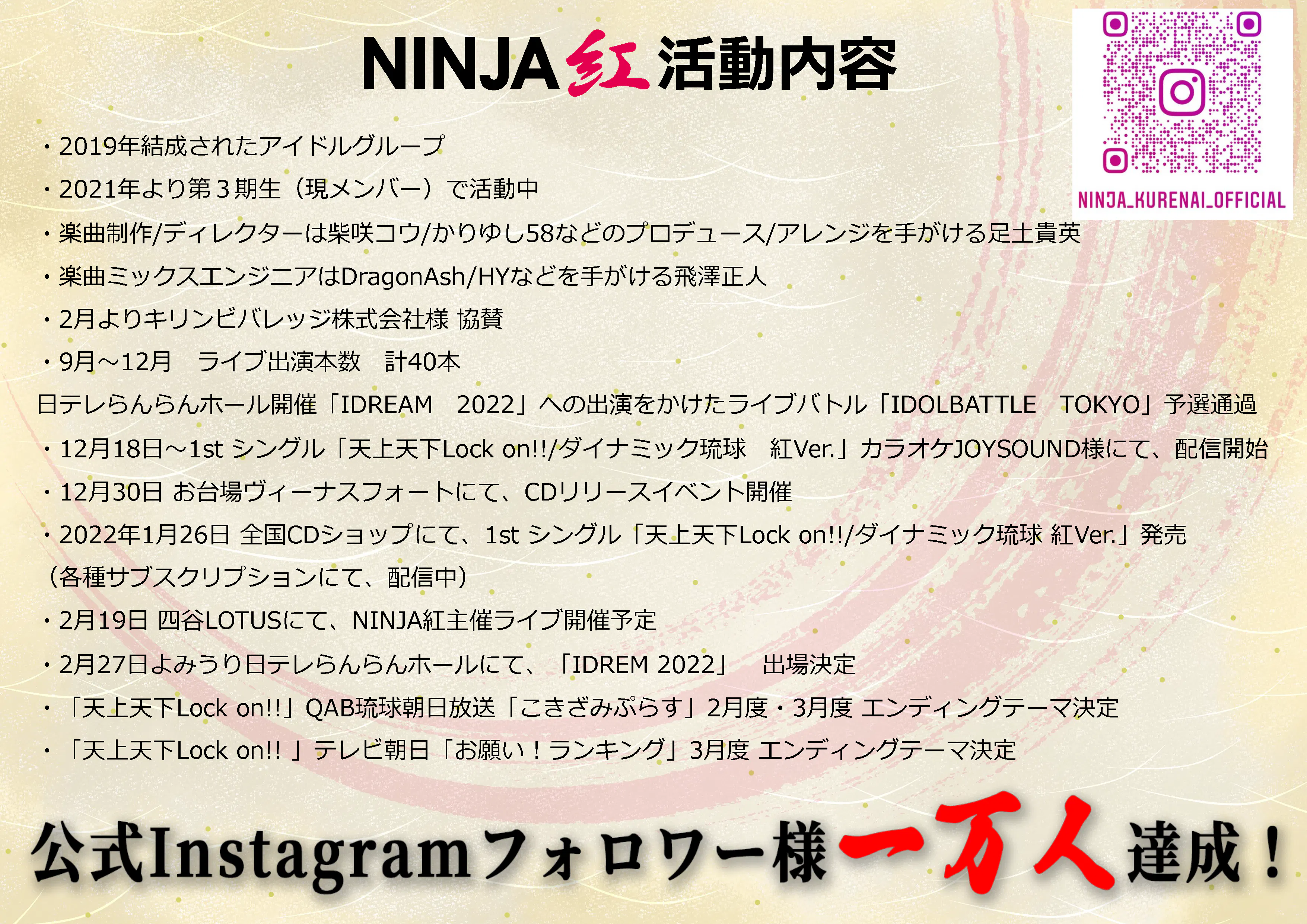 NINJA紅メンバー一同、全力で活動に取り組み、お応えしていく所存でございます。