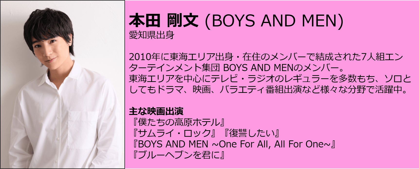 - また、前作の「棘の中の奇跡」でも主演を務めていただいたボーイズアンドメンのメンバーの出演も決定しました。