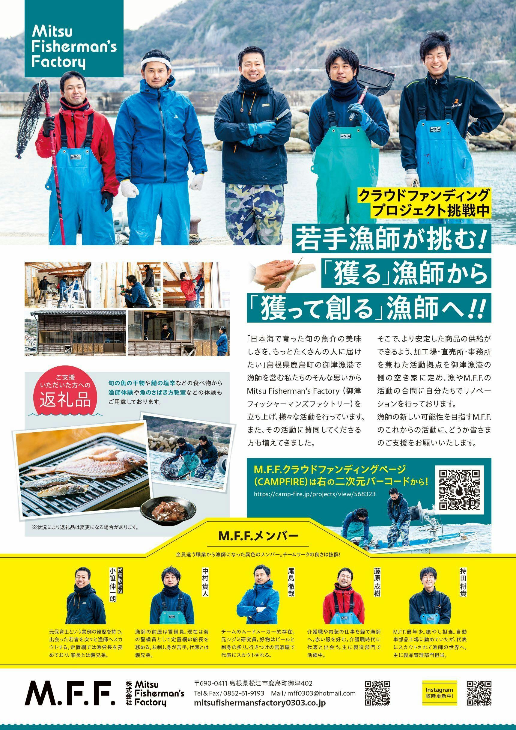 2022/06/30 12:00Mitsu Fisherman‘s Factory 代表小笹の先輩である関さん(ジャガゴリラさん)が島根に来てくださいました。その時に、関さんが体験して感じた事、M.F.F.への思いをブログにアップして頂きましたので、ぜひ皆様にもご覧頂けたらと思います。ブログ↓↓↓関さんによる島根の魅力・M.F.F.の魅力レポート もっと見る海の恵みを皆様に届けたい!!