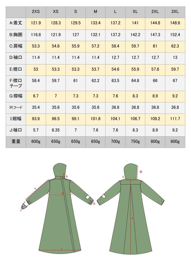 サイズ展開:2XS, XS, S, M, L, XL, 2XL, 3XL