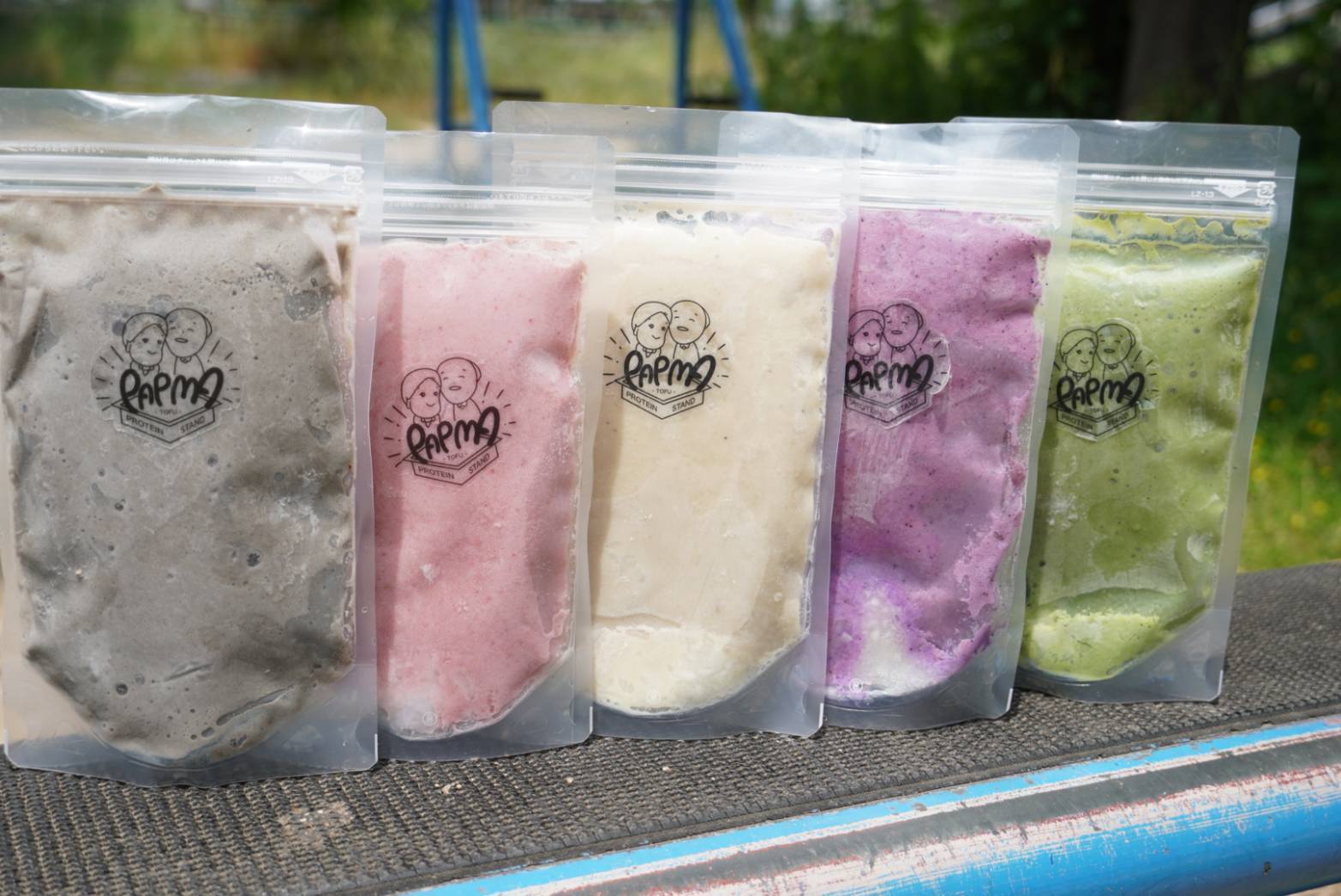 パプマは、70代の夫婦の松ちゃんと町子ちゃんが新鮮なお豆腐で1つ1つ心を込めて作る豆腐スムージーです。パプマの豆腐スムージーは“安全・安心・美味しい” はもちろんの事「高タンパク質・食物繊維豊富・無添加・ 低カロリー・腸活・ナタデココ入り」などカラダもココロも喜ぶ12種類以上の味ををご用意しております。