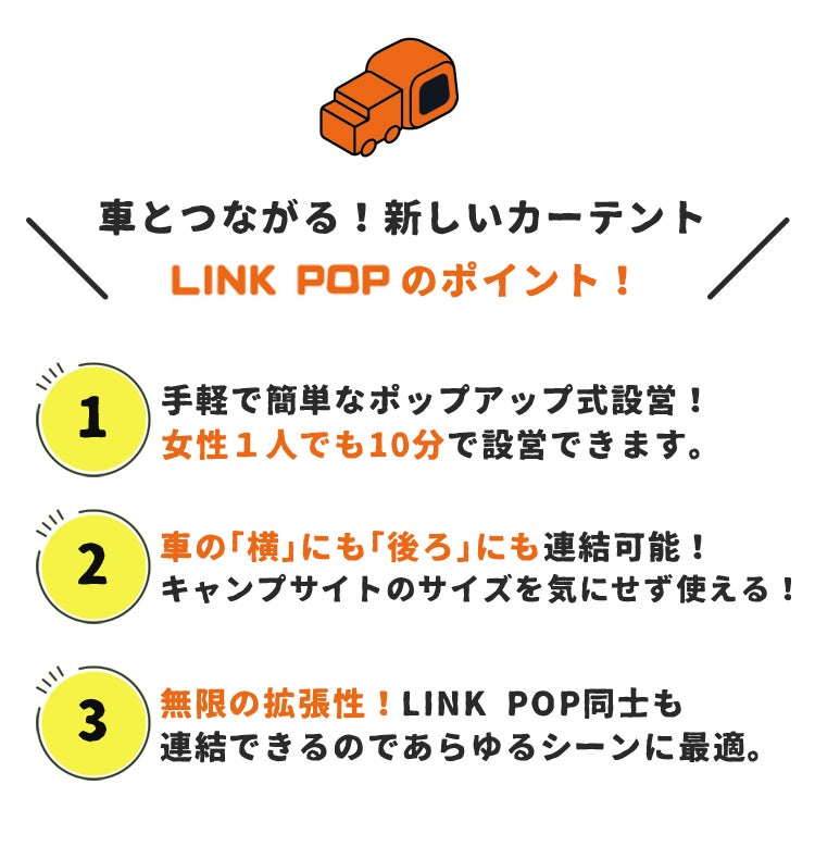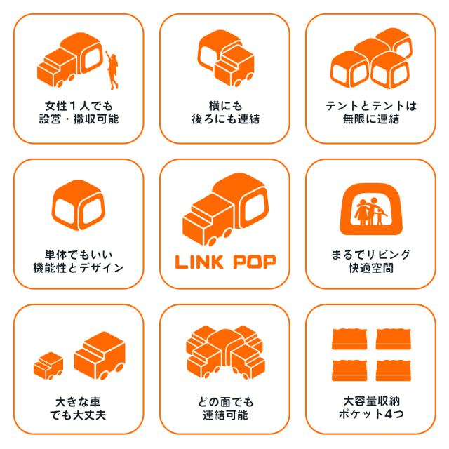 『車で運べるもう一つの我が家』それがLINK POPです。