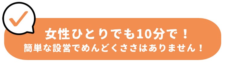 アウトドアに不慣れな女性でも1人でたった10分で設営できるほどに簡単!
