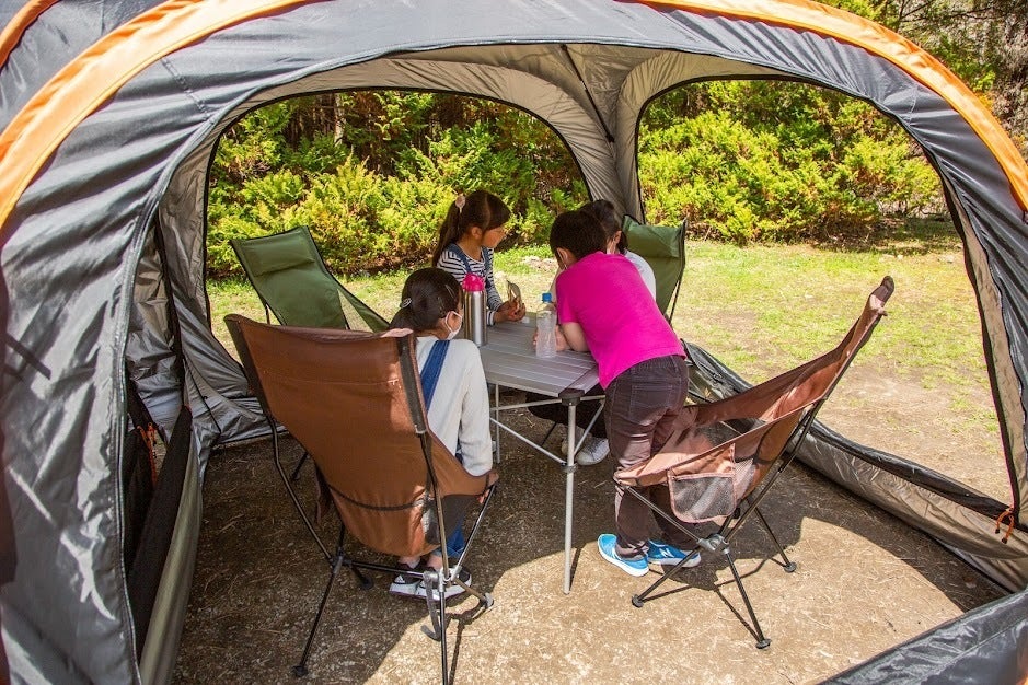 そこで、キャンピングカーがなくても、快適に家族で出かけられる方法を考え「簡単に設営できて、あらゆる場所で使えて、家族でゆったりとした時間を過ごせる快適な空間のテントを作ればいいんだ!」というアイデアを閃きました。