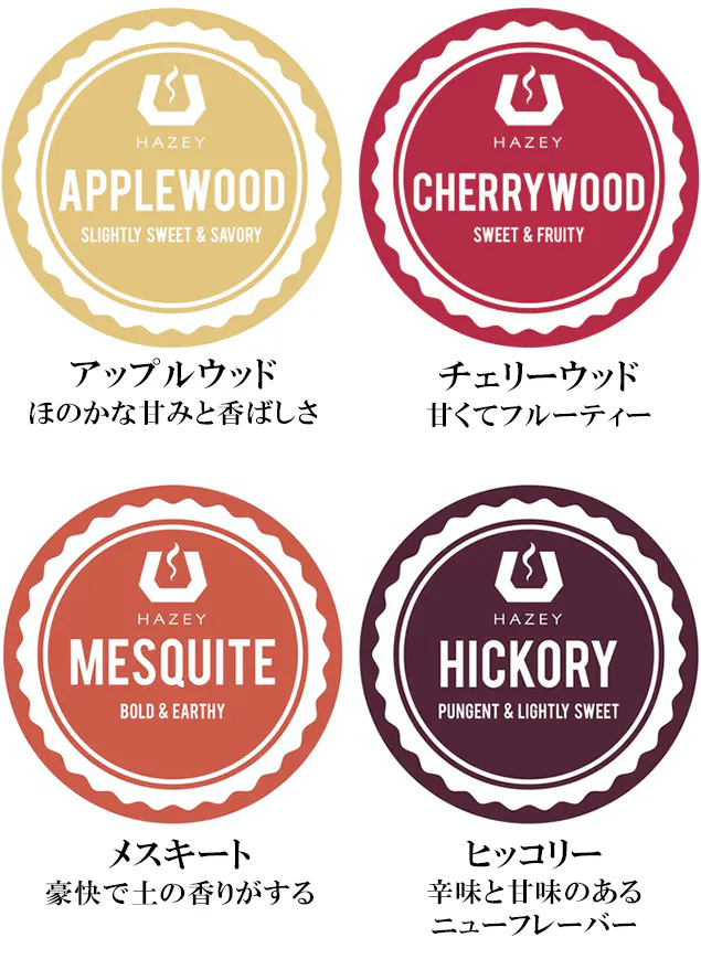 ●ウッドチップ各1(アップルウッド、チェリーウッド、メスキート、ヒッコリー)