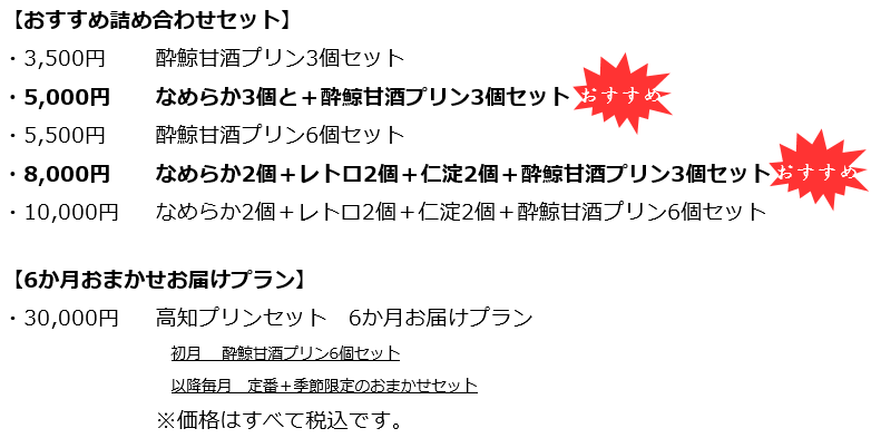 私達は、地元高知を活気付けるために 酔鯨様とのコラボレーション商品である「甘酒プリン」プロジェクトを鋭意進めております。少しでも高知のうまいものを知ってもらい、いつかまた、高知に足を運んでいただき地元貢献につなげたいと思っています。ぜひ皆様応援の程よろしくお願い致します。