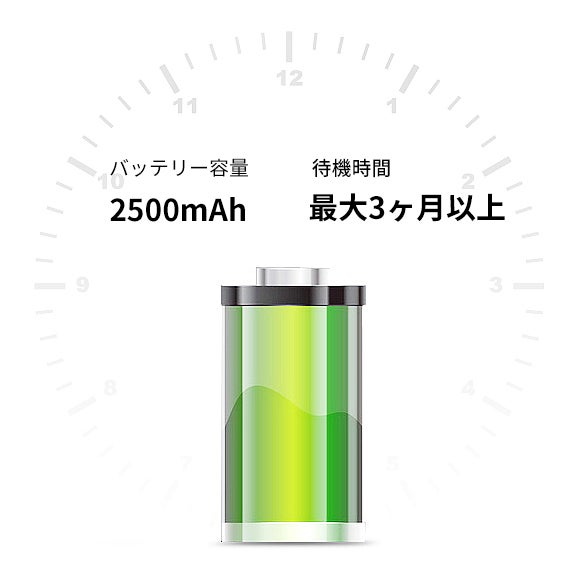 ・1回のフル充電で最大3ヶ月以上使用可能!