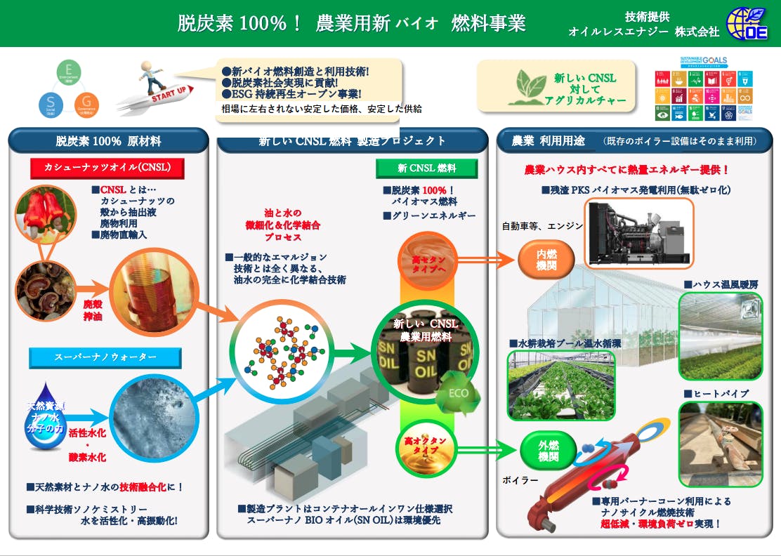 両社については、目的が国内外の事情と背景が別ですが、カシューナッツのバイオ燃料化は同じです。