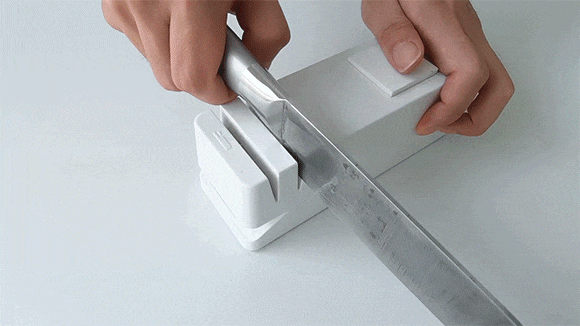 研ぎ器の上には正方形の砥石が搭載されています。これを使えば、手で包丁を研ぐことも可能です。