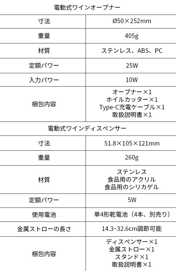 ・電動式ワインオープナー:ボタンを押すだけで、力要らずにスッとコルクが抜けます!
