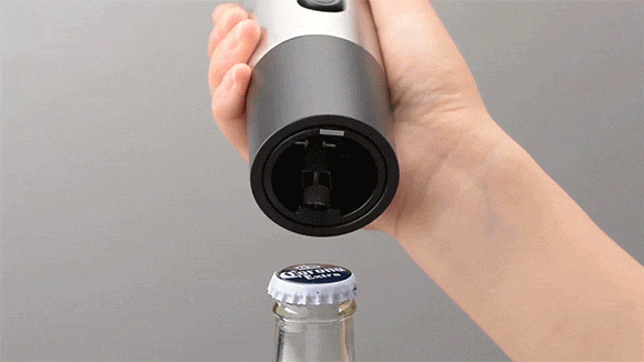 ワインオープナーの頂部にはビール瓶の蓋を抜くためのオープナーも付いており、金属製の蓋も簡単に抜けます!