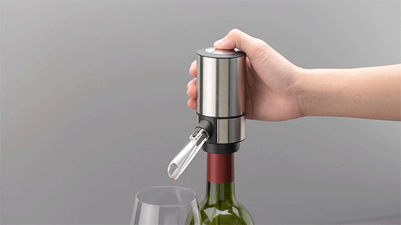 ワインディスペンサーは電動設計で、頂部のボタンを押すだけでワインを自動的に注げます。